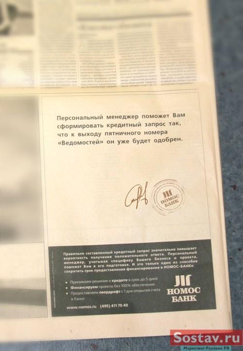 "Аврора" предложила НОМОС-БАНКу сделать частью сообщения сам рекламный носительИспользование свойств рекламного носителя как части креативной концепции было предложено "Креативным агентством "Аврора" в ходе продвижения финансовых услуг для среднего бизнеса, оказываемых НОМОС-БАНКом.Аудитории предъявлялся четкий факт: пока Вы читаете конкретное рекламное сообщение, здесь и сейчас в НОМОС-БАНКе происходят события, к которым Вы могли бы иметь отношение. Для каждого из задействованных в рекламной кампании изданий (газеты "Коммерсантъ", "Ведомости", журналы "Эксперт", "Финанс реклама", "Финансовый директор", Forbs) разрабатывался эксклюзивный модуль. На решение изначально накладывалось множество ограничений, исходящих из специфики как продукта, так и аудитории, - рассказывает креативный директор "Креативного агентства "Аврора" Константин Инин. - В этих условиях мы старались сделать не столько заметное, сколько запоминающееся решение. Конечно, во многом это удалось благодаря наличию у продукта очень четкого бенефита. Состав творческой группы Команда "Креативного агентства "Аврора": Креативный директор: Константин Инин Артдиректор: Екатерина Асмолова Копирайтер: Константин Инин Директор по работе с клиентами: Александр Гомыляев Команда НОМОС-БАНКа: Вице-президент, директор Департамента по связям с общественностью и рекламе: Валерий Зинченко Начальник Управления рекламы: Наталья Солдатова ![]() ![]() |