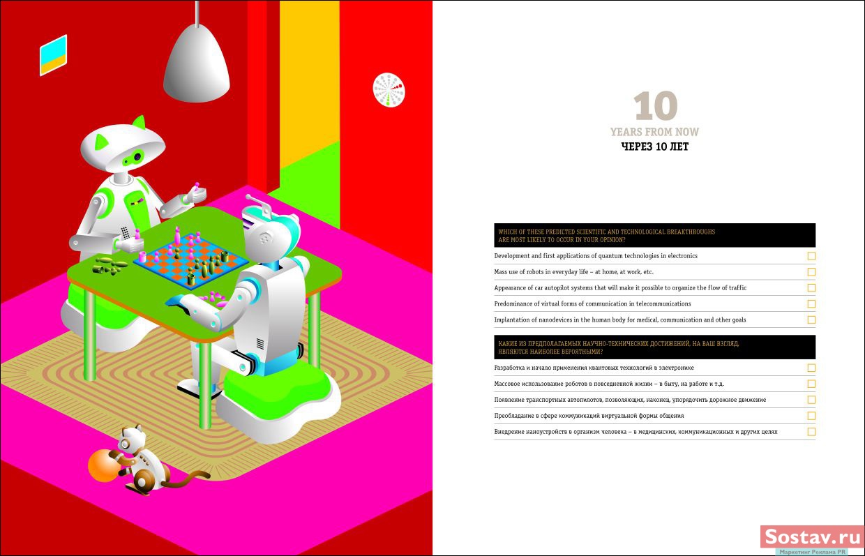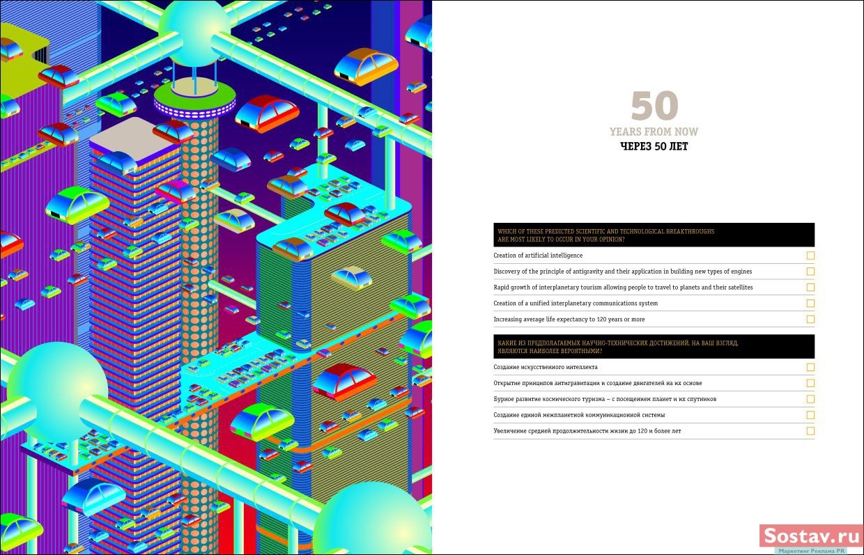 Постоянные поселения на Марсе и развитие телепатических способностей. Agey Tomesh делает годовой отчет для "Вымпелкома"Выпущен новый годовой отчет ОАО "Вымпелком" - "Загляни в будущее", разработанный дизайн-бюро Agey Tomesh в сотрудничестве с маркетинговым департаментом компании.Концепция отчета, позволяющая "заглянуть" в будущее, нашла свое отражение в двух параллельных решениях. С одной стороны, будущность опирается на подрастающее поколение, с другой представлена в виде "игровых" анкет, в которых всем акционерам компании предложено отметить наиболее интересные, на их взгляд, прогнозы развития научно-технического прогресса через 10, 25, 50 и 100 лет. Концепт годового отчета перекликается с поддержкой и развитием образовательных программ "Новые технологии - детям" и "Третье поколение", проводимые компанией "Вымпелком" в школах и ВУЗах России, а также подчеркивает активное использование и внедрение новых технологий в одной из ведущих коммуникационных компаний мира.