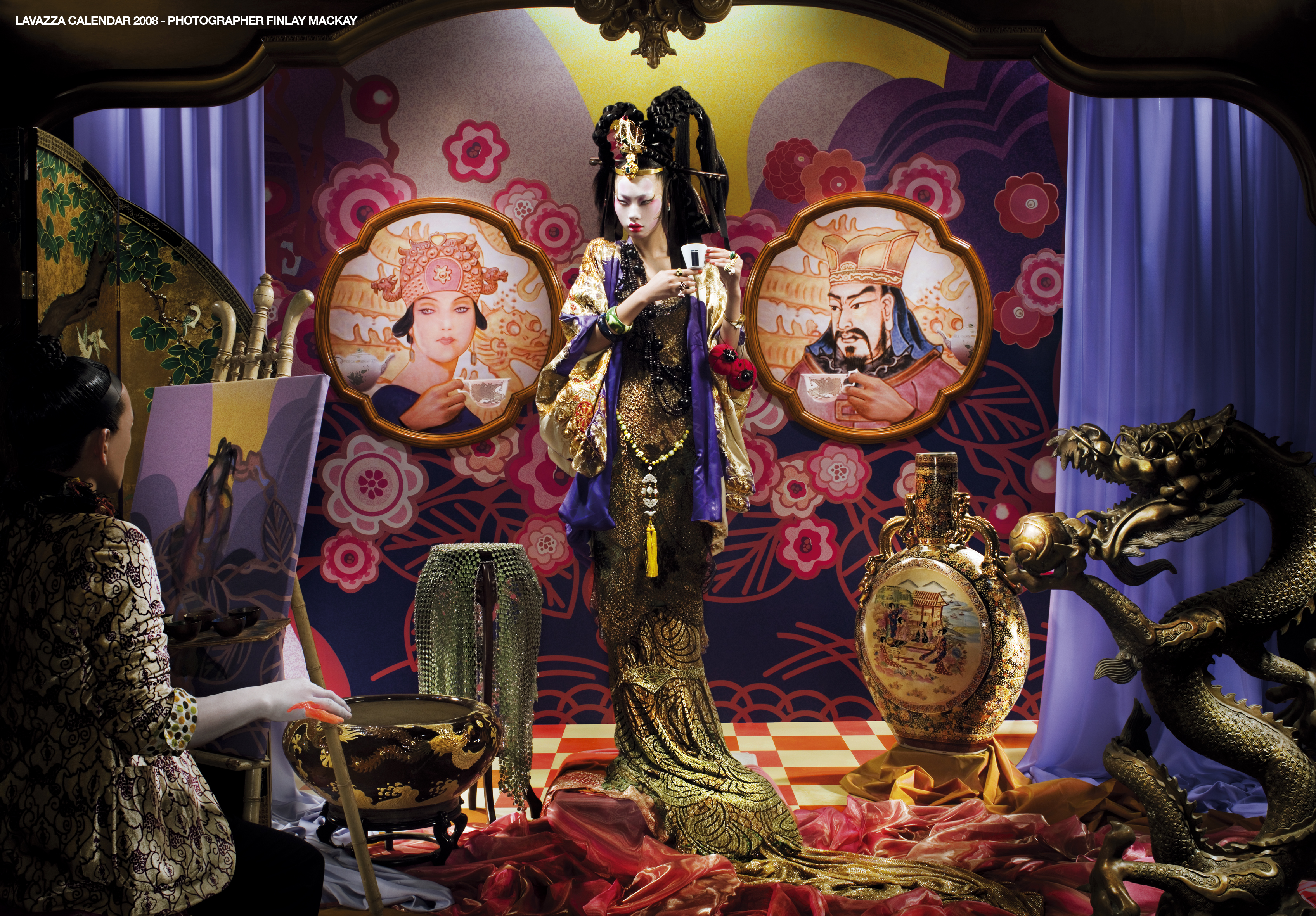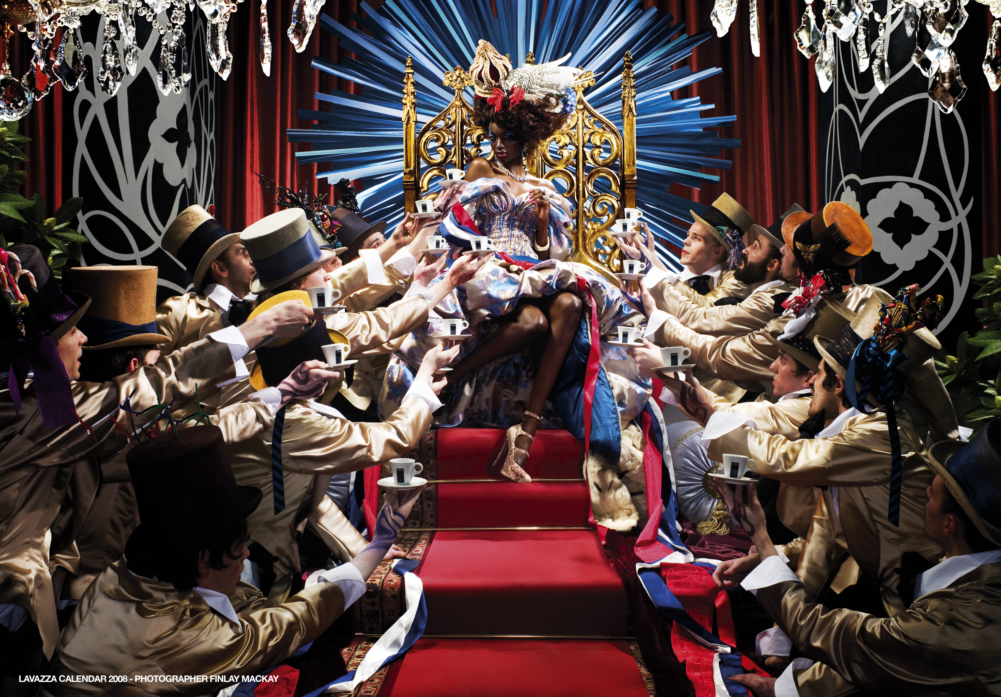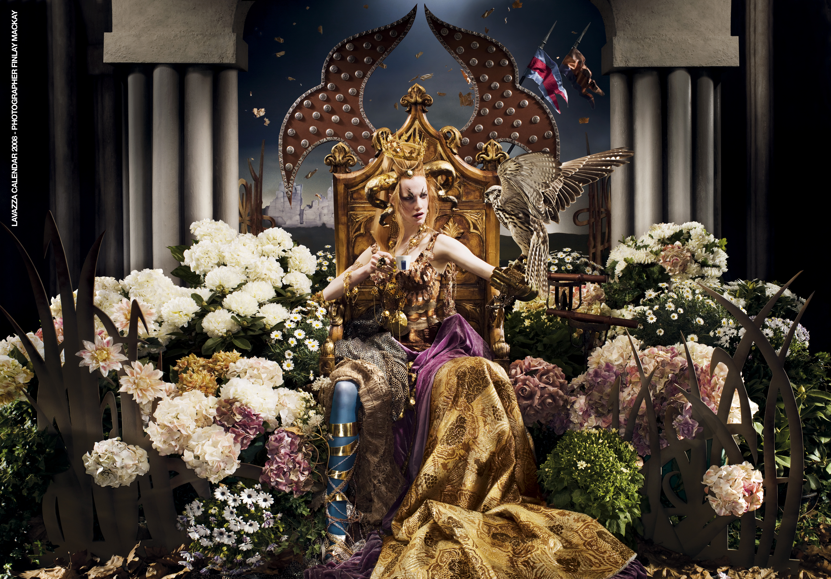 Ведущий производитель кофе Lavazza выпустил шестнадцатый по счету именной календарь бренда. На этот раз фотоаппарат оказался в руках всемирно известного фотографа Финли Маккея, который представил шесть работ с изображением прекрасных особ на фоне пышных королевских убранств.
