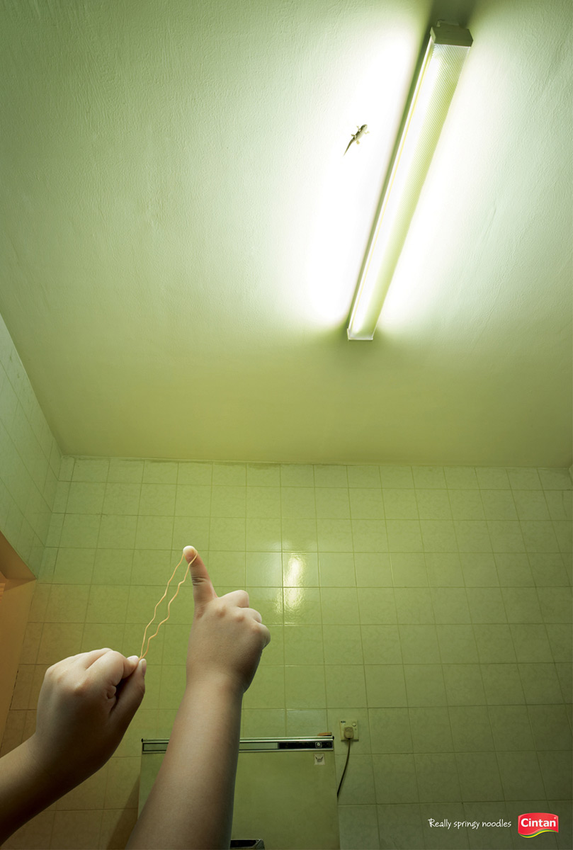 Лапшу Cintan можно использовать не только как едуЛапша быстрого приготовления Cintan предназначена не только для взрослых, но и для детей, которые могут использовать ее не только в качестве еды. Именно об этом можно судить, увидев эту рекламную кампанию, разработанную малазийским агентством Grey Kuala Lumpur.Надпись: Действительно упругая лапша. Clintan Агентство: Grey Kuala Lumpur, Малайзия Фотограф: Alex Tow, Studio Rom Творческий директор: Gautam Mehta Арт директор: Phoecus Lee, Andrew Fong Копирайтер: Charmaine Sankar |