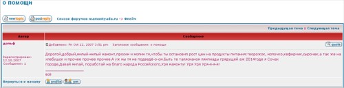 На сайте mamontyada.ru периодически обновляются новости и появляются дополнительные возможности, как, например, игра «Одень мамонтенка». А вот форум сайта не вызывает у публики интереса. В разделе свободного общения появились темы, не относящиеся к «всероссийскому делу». Модератор, видимо, сам мамонтенок, не спешит очистить сайт от откровенной рекламы. Инфляция куда больше беспокоит народ, нежели выборы талисмана. Одно сообщение в рубрике «Флейм» не оставило равнодушным редакцию нашего портала.