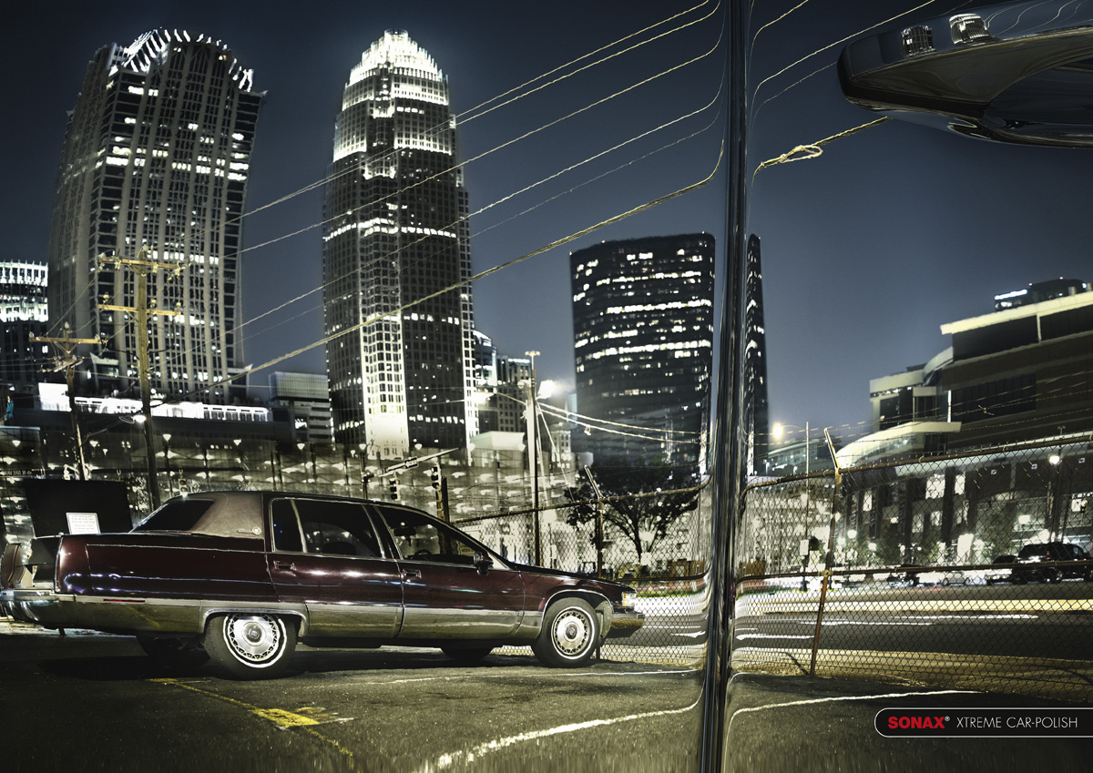 Чтобы прорекламировать полироль SONAX, нам показывают пейзажиВ искривлении этих урбанистических, и не только, пейзажей на этих принтах от агентства Serviceplan нет ничего странного. Дело в том, что всего-навсего отражение на капоте или двери автомобиля, который отполирован специальной автомобильной полировкой SONAX.Агентство: Serviceplan M?nchen/Hamburg, Германия Творческий директор: Ekki Frenkler Арт директор: Miro Moric Графический дизайн: Patrizia Marroni Фотограф: Anatol Kotte |