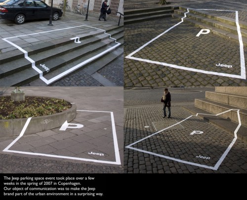 Парковка для Jeep от агентства Bates Y&RЧтобы показать ЦА, что внедорожники Jeep хороши не только на природе, но и в городе, датское агентство Bates Y&R показало прохожим, где можно припарковать такой автомобиль, например, на ступеньках, клумбах и тротуаре.Агентство: Bates Y&R, Копенгаген, Дания Главный творческий директор: Ib Borup Арт директор: Peder Schack Копирайтер: Tobias Aggergaard Фотограф: Pernille Elung |
