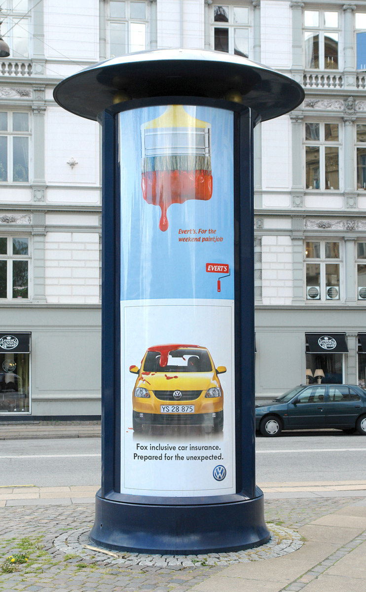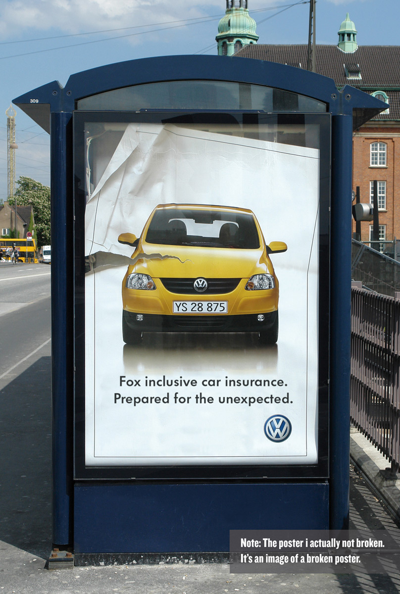 Для рекламы автострахования Volkswagen Fox испортили рекламные щитыКто знает, что может случиться с вашей машиной, пока вы находитесь далеко от нее. Ее могут ударить, облить краской, перевернуть, как это случилось, например, с рекламными постерами от агентства DDB Denmark. Именно на такие непредвиденные случаи и рассчитана специальная страховая программа Volkswagen Fox.Надпись: "Эксклюзивное автострахование Fox. Подготовлено к непредсказуемому." Агентство: DDB Denmark Творческий директор: Poul Mikkelsen Арт директор: Mikkel Miller Копирайтер: Claus Walter Иллюстратор: Morten Hagstr?m Фотограф: Christian St?hr |