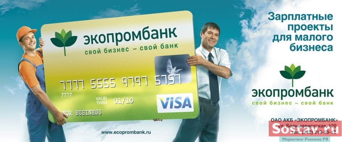 Рекламная группа "Мелехов и Филюрин" разработала концепцию продвижения для пермского "Экопромбанка". В качестве основных каналов новая рекламная кампания использует наружку, радио, прессу и Интернет. Стратегическим направлением деятельности банка является поддержка малого и среднего бизнеса. Это отражает их девиз "Свой бизнес - свой банк" и новая серия наружной рекламы. m-f.ru