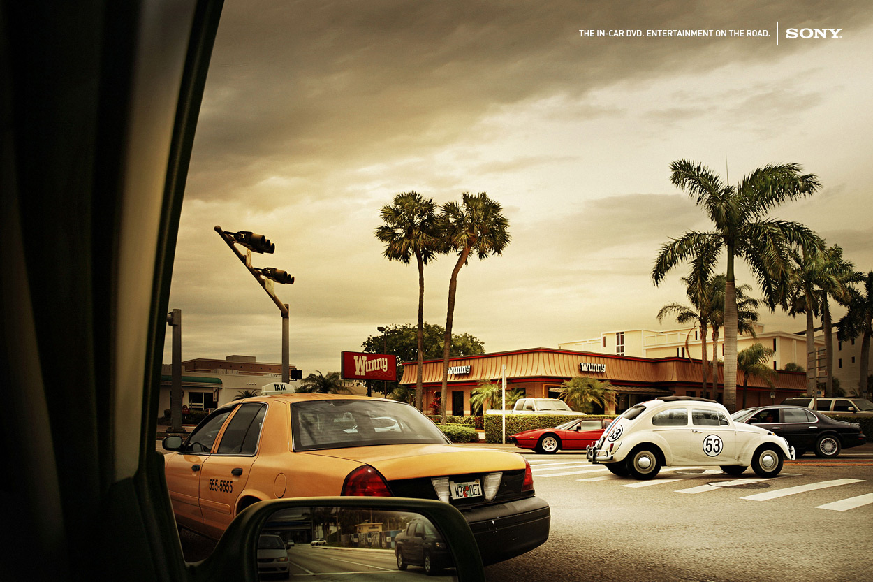 С автомобильным DVD-плеером Sony водитель увидит на дороге много чего интересногоКак считает агентство FP7 Dubai, только тот водитель, в машине которого установлен DVD-плеер от Sony, сможет увидеть на дороге того, чего не увидит никто другой, например, такие легендарные автомобили, как Китт (из сериала "Рыцарь дорог"), фургон Mystery Machine (из мультсериала "Скуби-Ду"), Херби (из фильма "Сумасшедшие гонки"), Генерал Ли ("Придурки из Хаззарда") и всемирно известная ДеЛореан ("Назад в будущее").Надпись: "DVD в машине. Развлечение в дороге. Sony" Агентство: FP7 Dubai, ОАЭ Творческий директор: Ali Ali Арт директор: Maged Nassar, Ali Ali Копирайтер: Ali Ali, Maged Nassar Фотограф: Jaime Mandelbaum Ретушь: Furia |