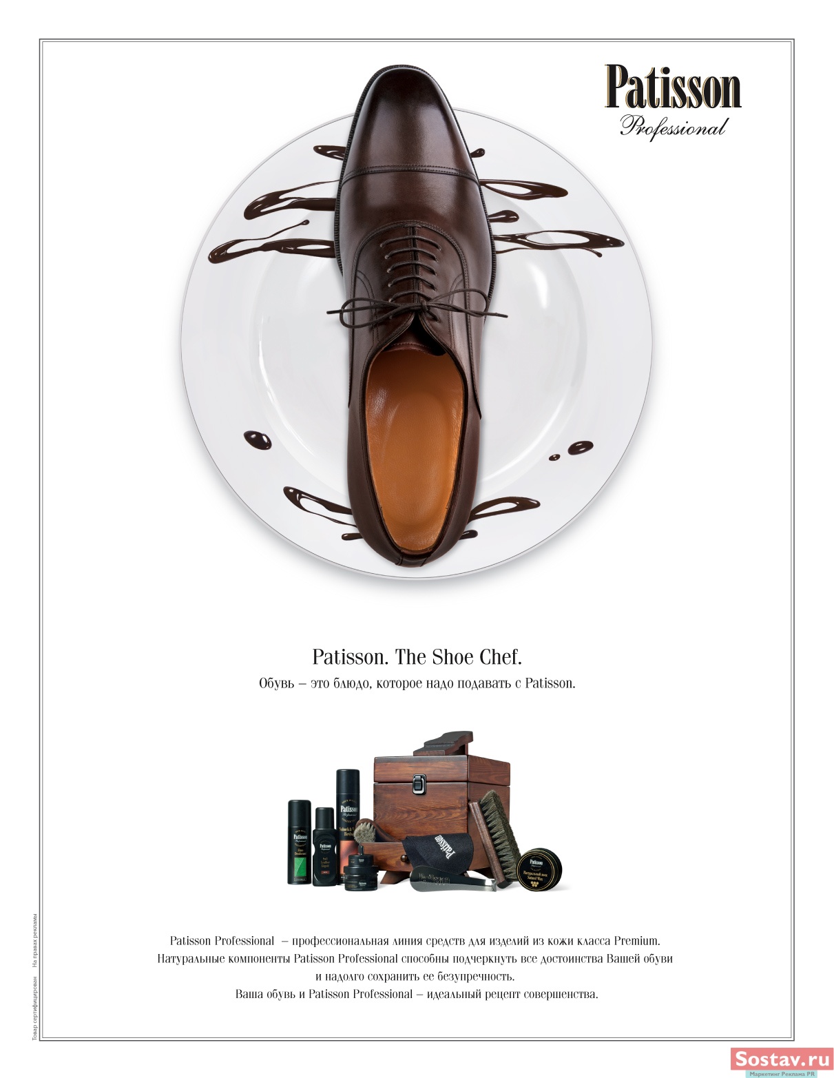 TWIGA TOUCH: обувь можно съесть под кремом PatissonКреативное агентство TWIGA TOUCH выиграло тендер компании UPECO на разработку креативной концепции для торговой марки Patisson - средства по уходу за обувью сегмента premium.- The Shoedonists - так мы назвали ядро целевой аудитории Patisson. The Shoedonists уделяют своей обуви очень много внимания. Они ценят, "смакуют" в них каждую деталь, получая удовольствие не только от результата, но и от процесса ухода за обувью. Возвысить его в коммуникациях Patisson, творчески интерпретировать в соответствии с эмоциями The Shoedonists - вот была наша цель - комментирует Михаил Елагин, генеральный директор TWIGA TOUCH. - Агентство TWIGA TOUCH представило концепцию, которая максимально соответствует задаче представить Patisson совершенно по-особенному - вне тех коммуникационных стандартов, на основе которых делается подавляющее большинство коммуникаций нашего рынка - добавляет Владислав Усик, бренд-менеджер Patisson. Соус на макете изготовлен непосредственно из продукции торговой марки Patisson без каких-либо материальных добавок. |