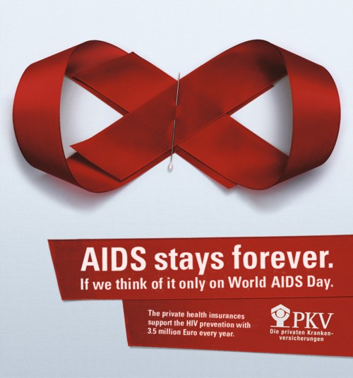 Символ борьбы со СПИДом как знак бесконечности этой болезниКрасная ленточка стала общепризнанным и популярным символом борьбы со СПИДом и солидарности с теми, кого эпидемия затронула лично. А агентство BUTTER.Berlin, соединив две таких ленточки вместе, создало по заказу PKV (Private Health Insurance) знак бесконечности существования СПИДа, чтобы напомнить нам о том, что об этой болезни нужно задумываться как можно чаще.Надпись: "СПИД останется навсегда. Если мы будем задумываться о нем только во Всемирный День Борьбы со СПИДом." Агентство: BUTTER.Berlin, Берлин, Германия Творческий директор: Timm Holm, Michael Preuss Арт директор: Bj?rn v. Buchholtz Копирайтер: Till Grabsch Фотограф: Nico Hesselmann |