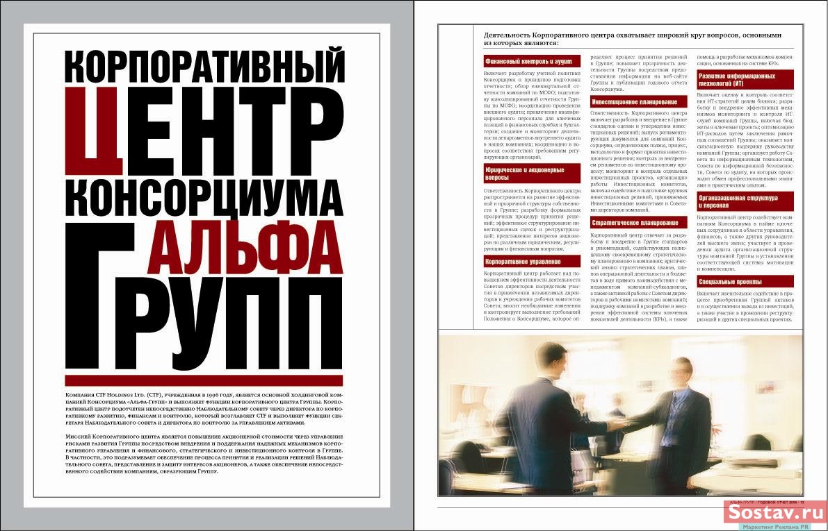 AGEY TOMESH оформил годовой отчет "Альфа-Групп" в виде бизнес - журналаДизайн-бюро AGEY TOMESH разработало оригинал-макет годового отчета для финансово-промышленного консорциума "Альфа-Групп".В качестве концепта оформления заказчиком было принято предложение сделать годовой отчет в виде бизнес - журнала. В "журнале" отражены все сферы бизнеса, касающиеся деятельности консорциума: добыча нефти и газа, коммерческая и инвестиционная банковская работа, управление активами, страхование, розничная торговля, телекоммуникации и многие другие, - иными словами все то, что делает из "Альфа-Групп" главного поставщика новостей для деловой прессы России. В электронном виде годовой отчет опубликован на корпоративном сайте "Альфа-Групп" в разделе "Финансовая информация" ![]() |