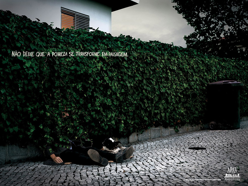 Пейзажи бедностиЕсли на улицах вашего города бедняки уже стали нормальным явлением и вы уже больше не обращаете на них внимание, то, по мнению агентства McCann Erickson, улицы вашего города будут выглядеть именно так. А социальная организация APAV призывает всех не допустить, чтобы бедность превратилась в пейзаж.Надпись: "Не дай бедности превратиться в пейзаж." Агентство: McCann Erickson, Лисабон, Португалия Творческий директор: Diogo Anahory, Jos? Carlos Bomtempo Копирайтер: Rodrigo Almeida Арт директор: Bruno Almeida Исполнительный аккаунт-менеджер: C?lia Felix Фотограф и Пост-производство: Krypton Photo |