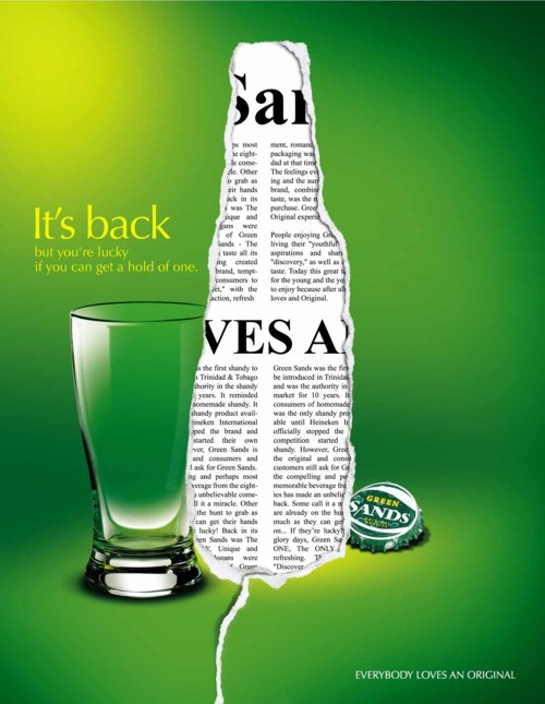 Ты счастливчик, если попробовал пиво Heineken Green SandsПиво Heineken Green Sands настолько восхитительно, что его обожают все. Так что, как считает агентство McCann Erickson Trinidad, ты просто счастливчик, если тебе удалось завладеть хотя бы одной бутылочкой этого пива, ведь его так сложно даже увидеть.Надпись: "Оно вернулось. Но ты счастливчик, если получил шанс завладеть им… пока этого не сделал наш фотограф. Все любят оригинал" Агентство: McCann Erickson Trinidad, Trinidad and Tobago Творческий директор: Marvin Imamshah Арт директор: Marc Arneaud, Ronald Martineau Копирайтер: Asma Ali Фотограф: Bertrand De Peaza Аккаунт-группа: Ryan Darcy, Stephen Look Tong, Stasia Cabral, Shiva Orie |