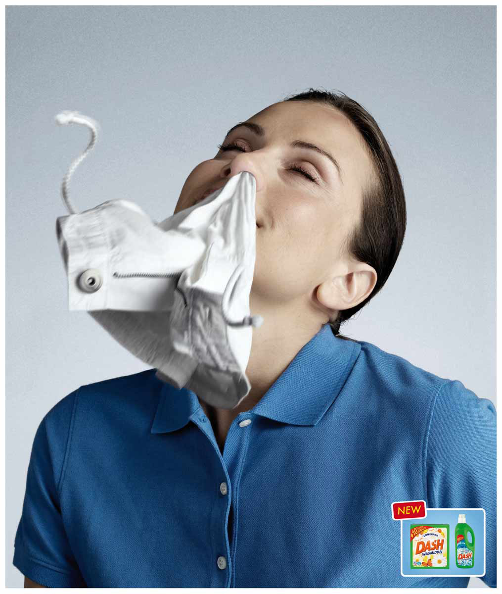 Средство для стирки Dash может навредить домохозяйкамПо мнению нидерландского агентства Saatchi & Saatchi Amsterdam, средство для стирки белья Dash придает белью такой восхитительный аромат, что хозяйки просто не могут устоять и втягивают носом запах так сильно, что одежда затягивается в нос.Агентство: Saatchi & Saatchi Amsterdam, Нидерланды Фотограф: Mejor Samrai Творческий директор: Magnus Olsson Копирайтер: Menno Schipper Арт директор: Nils Taildeman Аккаунт-менеджер: Tanya Jaspers, Mark Brounen |