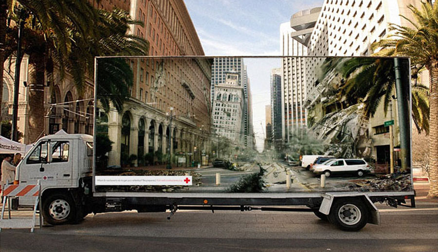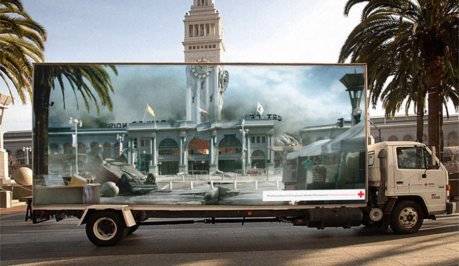 Биллборд-разрушительПроходя мимо мобильного биллборда с рекламой «Красного креста» и ненароком бросив взгляд на городскую перспективу, жители Сан-Франциско рискуют пережить шок: на улицах родного города творится «последний день Помпеи». Рушатся здания, лежат кверху брюхом автомобили – картина, характерная для мощного землетрясения. Таким неделикатным способом американский «Красный крест» напоминает согражданам, что благополучие Сан-Францисского побережья в ближайшие 30 лет могут поколебать разрушительные подземные толчки. Другие носители-участники медиамикса призывают без паники готовиться к худшему – запасаться непортящимися продуктами, посещать курсы по обучению действиям в экстремальных ситуациях.Разработчику кампании, местному агентству Publicis & Hal Riney работа принесла серебро фестиваля London International Awards 2007, а «Красному кресту» – внимание аудитории. Представитель организации Майкл Патрик (Michael Patrick) утверждает, что пугать горожан никто не собирался – «мы позволили себе такой ход, потому что иначе люди просто не хотят нас слушать». KAK.RU |