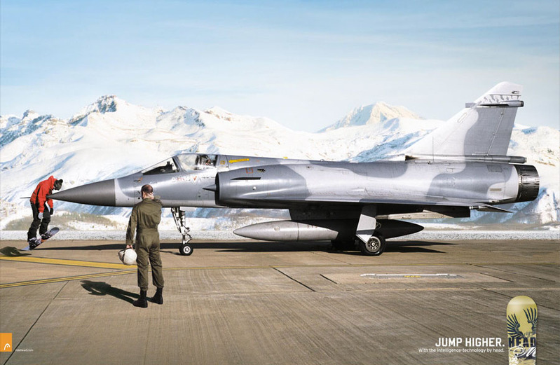 Выше головы прыгнешь - самолетом зашибетВыше головы не прыгнешь? Это смотря, на чем и откуда прыгать. Швейцарское агентство Advico Young & Rubicam для рекламы сноубордов Head принесло в жертву сноубордиста, "насадив" любителя экстремального спорта на нос пролетавшего мимо военного истребителя.Слоган: Jump higher ("Прыгай выше") Advertising Agency: Advico Young & Rubicam, Zurich, Switzerland Executive Creative Director: Urs Schrepfer Art Director: Marietta Albinus Copywriter: Martin Stulz Photographer: Markus Weber |