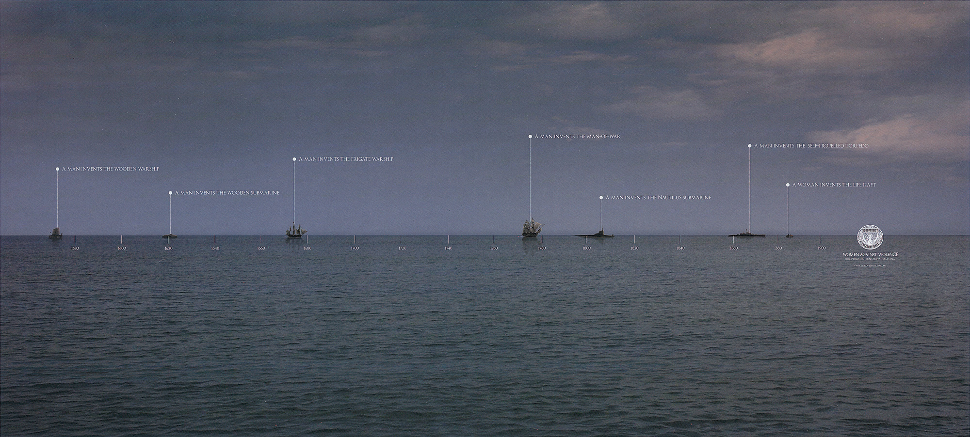 Женщины против мужчин в социалке Women Against ViolenceЖенщины - это сила, которая может противостоять насилию, считают в агентствах Y&R и Kuala Lumpur, где были созданы эти принты. Каждый из плакатов показывает изобретения и начинания мужчин и то, как женщины противостоят этому. Мужчины начали воевать, а женщины организовали медсестринскую помощь, мужчины строят военные корабли, а женщины придумали спасательный плот, мужчины создали оружие, а женщины изобрели пуленепробиваемый кевлар.Агентство: Y&R Malaysia/Y&R Philippines, Kuala Lumpur/Makati City Творческий директор: Rowan Chanen, Leigh Reyes, Edward Ong Копирайтер: Leigh Reyes, Trisha Uy Арт директор: Trisha Uy, Ted Royer Фотограф: Raul Montifar Иллюстратор: Derrick Periodico, Michael Fallarme |