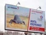 Мусульман Челябинска возмутил рекламный плакат, размещенный недалеко от мечети, на котором изображен человек на коленях, зарывший голову в песок. Картинку сопровождает надпись: «Нет проблем?»