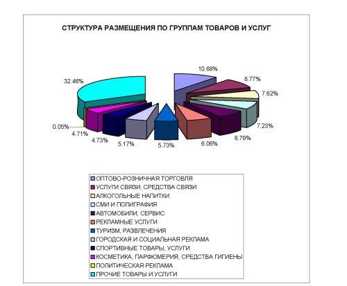А структура размещения по группам товаров и услуг такова: