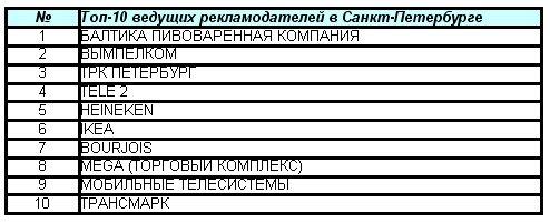 Любители «наружки». СентябрьСеверо-Западное представительство исследовательской компании «ЭСПАР-Аналитик» подвело итоги сентября в сегменте наружной рекламы. Как рассказали AdLife.spb.ru в компании, в первом осеннем месяце топ-10 наиболее активных в «наружке» Петербурга рекламодателей выглядит следующим образом: