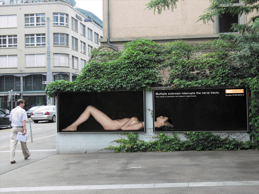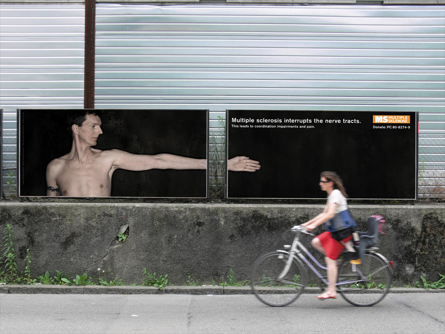 Социалку от MS о рассеянном склерозе пришлось разместить сразу на двух щитахЧтобы наглядно показать последствия рассеянного склероза, швейцарское агентство Advico Young & Rubicam решило разместить плакаты сразу на двух щитах. Дело в том, что рассеянный склероз разрушает нервнее пути, что и пытались донести до нас по заказу общественной организации MS (Multiple Sclerosis).Надпись: "Рассеянный склероз разрушает нервные пути. Это приводит к параличу и ухудшению речи / к недержанию, импотенции и параличу / к ухудшению координации и боли." Агентство: Advico Young & Rubicam, Цюрих, Швейцария Творческий директор: Daniel Comte, Urs Schrepfer Арт директор: Marietta Albinus Копирайтер: Martin Stulz Фотограф: Peter Hebeisen |