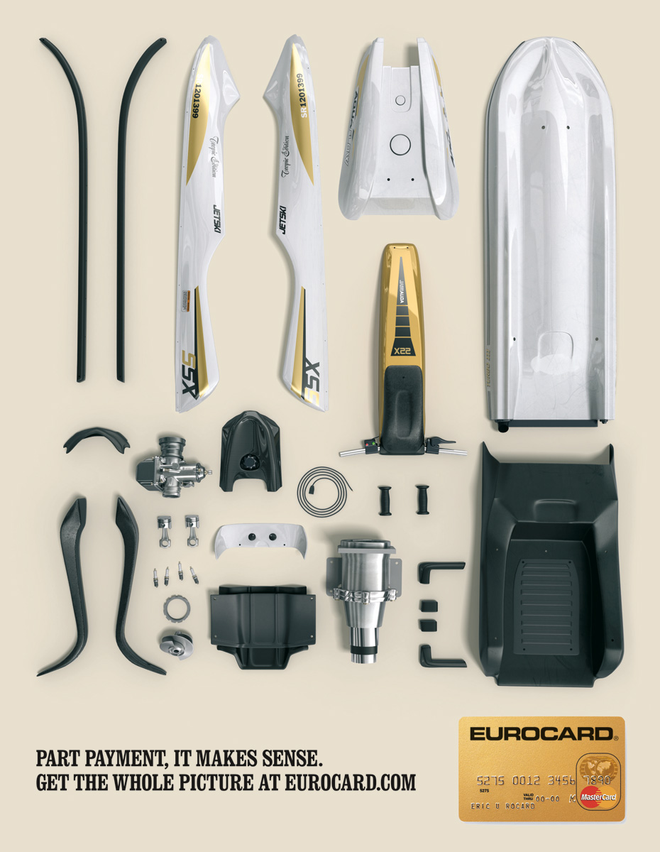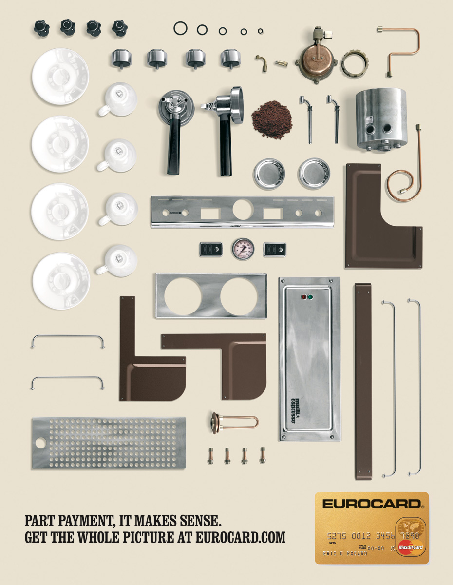 С Eurocard вы можете купить желаемое по частямКак сообщает шведское агентство SWE, пластиковые карты платежной системы Europay от MasterCard - Eurocard - дают всем шанс расплачиваться за покупку по частям, будь то велосипед, кофе-машина или снегоход. Эти принты - не первый опыт работы агентства SWE для карт Eurocard.Надпись: "Частичная оплата, это имеет смысл. Получи полную картину на eurocard.com" Агентство: SWE, Стокгольм, Швеция Творческий директор: Bj?rn Schumacher Арт директор: Sven Dolling Копирайтер: Daniel Vaccino Менеджер проекта: Josef Danell |