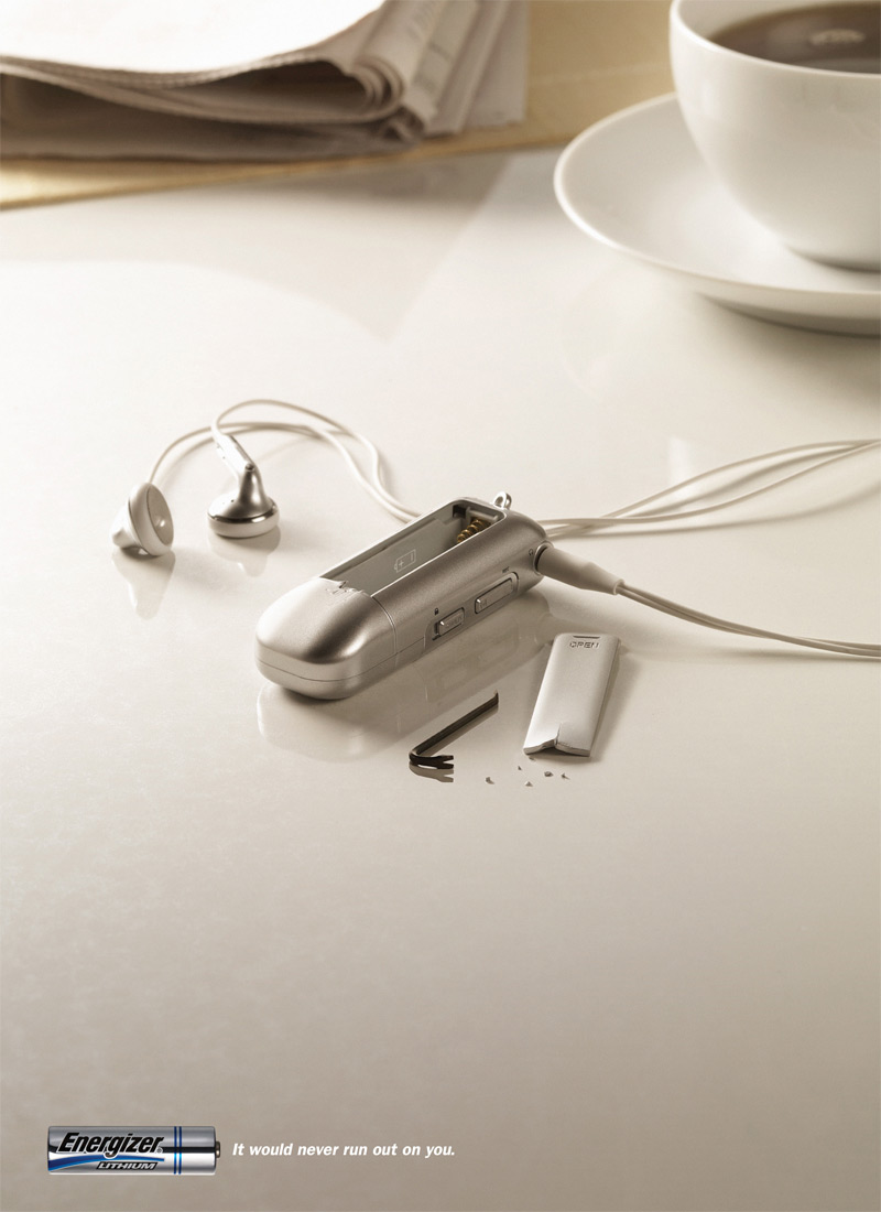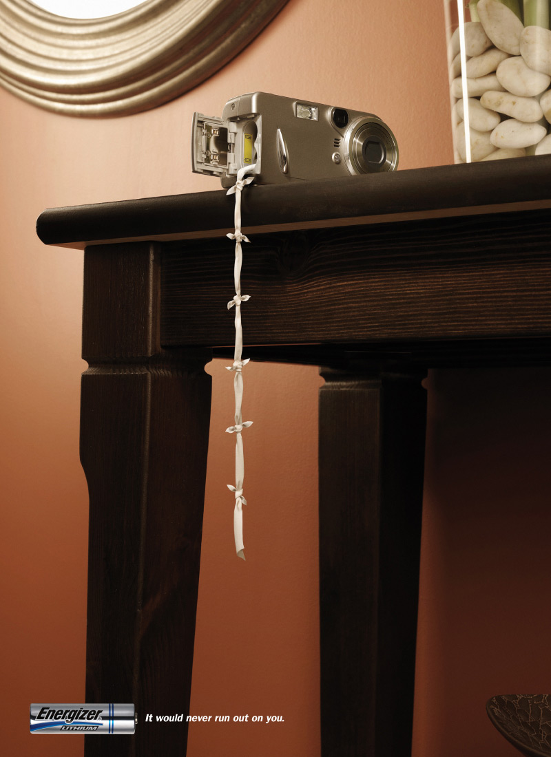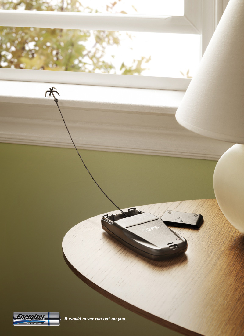 Энергия батареек Energizer не сбежит от васКак сообщает нам канадское агентство TBWA\Toronto, создавая эту рекламную кампанию для батареек Energizer, ваши электроприборы никогда не подведут вас. А чтобы визуализировать эту мысль, нам показывают, как энергия может сбежать.Надпись: "Energizer. Они никогда не покинут вас." Агентство: TBWA\Toronto, Канада Творческий директор: Joe Amaral Арт директор: Pete Ross Копирайтер: Allan Topol Фотограф: Adam Rankin |