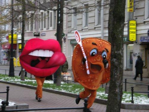 Сеть «Чайная ложка» запустила промо-акцию, в рамках которой по центральным улицам города и в местах расположения чайных рот гоняется за блином, привлекая внимание прохожих, а промоутеры в оранжевых одеяниях с фирменной символикой «Чайной ложки» раздают листовки, информирующие об акции, проходящей под лозунгом «Блин быстро или бесплатно».