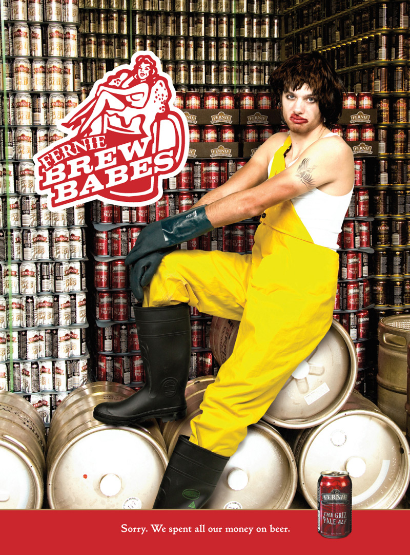 Обворожительные крошки с пивоварни Fernie. Простит трансвеститов, они потратили все деньги на пивоКак известно производители таких товаров, как алкоголь или табак, в своих рекламных кампаниях часто прибегают к услугам девушек-фотомоделей. Канадское агентство Big House Communications тоже хотело привлечь к рекламе пива эффектных "деток", но у пивоварни Fernie не хватило денег, т.к. весь бюджет был потрачен на выпуск качественного и вкусного пива.Надпись: "Детки с пивоварни Fernie. Извините, мы потратили все наши деньги на пиво." Агентство: Big House Communications, Ванкувер, Канада Помощник творческого директора: Michael Bryden Арт директор: Mike Fiorentino Копирайтер: Chris Kostyal Фотограф: Ray Lum |