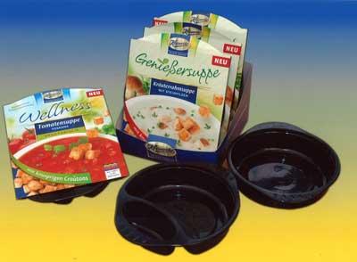 Новая концепция упаковки для готовых супов от Keunecke FrischemenueКомпания RPC Bebo Plastik изготовила по заказу немецкой гастрономической фирмы Keunecke Frischemenue новую упаковку для готовых супов. Новый дизайн упаковки включает термоформованный полипропиленовый контейнер, который позволяет при желании употребить суп прямо из упаковки, разогрев его в микроволновой печи. Упаковка представлена в двух форматах – в однокамерном и двухкамерном исполнении, а также с отдельной емкостью для гренок, если это предусматривает рецептура. Keunecke Frischemenue производит линейку готовых супов со сроком хранения не менее 28 дней и возможностью 3-минутного разогрева в микроволнах перед употреблением.![]() UNIPACK.RU |