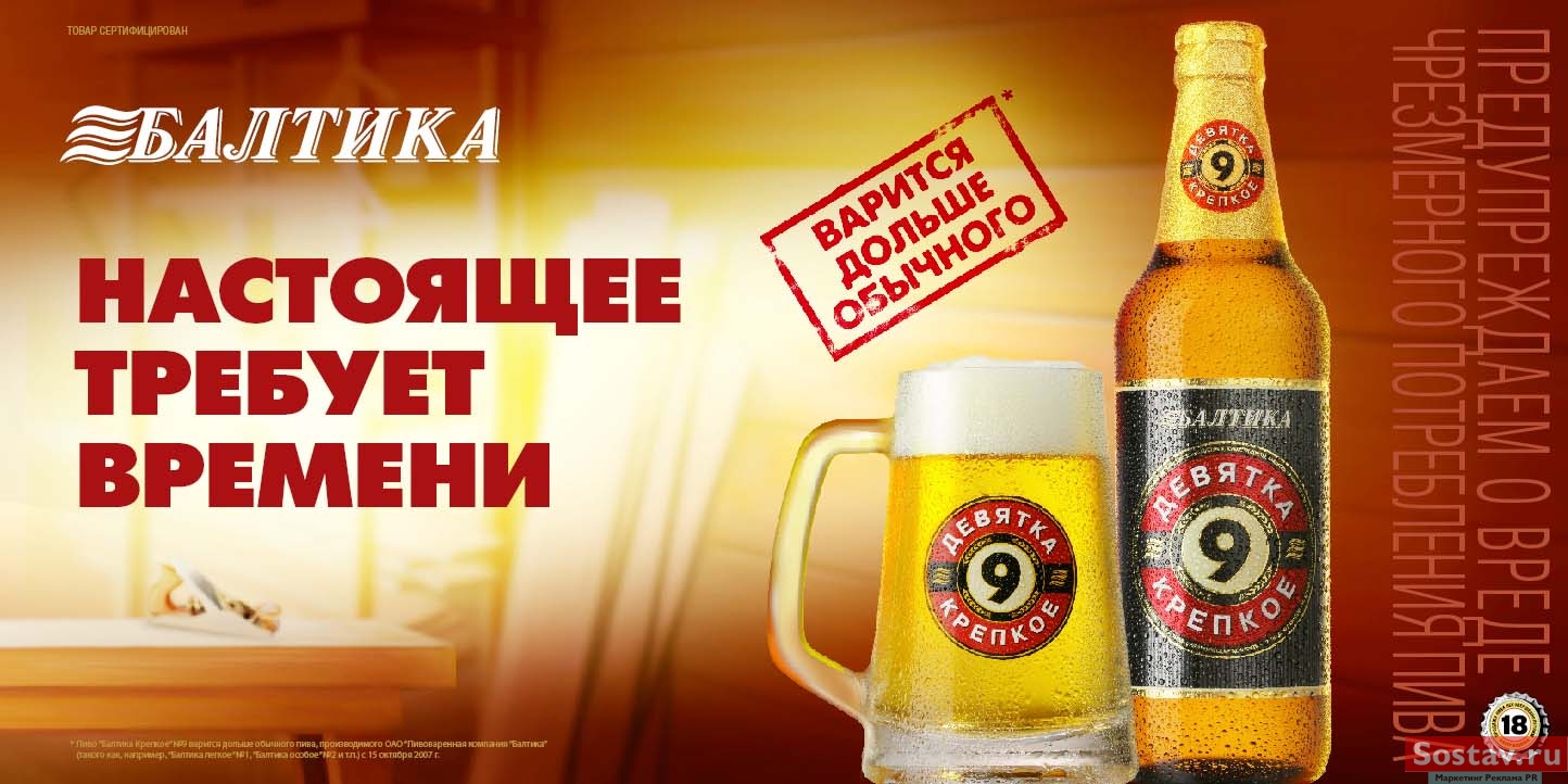 "Девятка" вышла во второй тур. Great продолжает кампанию наружной рекламой1 декабря запущена вторая волна масштабной рекламной кампании бренда "Балтика Девятка" под слоганом "Настоящее требует времени". Новые вижуалы размещены в крупных торговых сетях, наземном транспорте 14 городов, на наружных носителях в 37 городах, а также в Петербургском метрополитене.Как и новый ТВ-ролик, который ротируется на основных федеральных каналах с 19 ноября, имиджи отражают идею о том, что хорошую вещь можно сделать только не спеша, как и качественное крепкое пиво, технология приготовления которого требует больше времени и внимания пивоваров. Креативная группа: ОАО "Пивоваренная компания "Балтика": Вице-президент по маркетингу - Марчо Куюмджиев Директор по развитию ключевых брендов - Денис Шерстенников Маркетинг менеджер - Максим Лазаренко Бренд-менеджер - Павел Еранкевич Руководитель группы производства рекламы - Андрей Слонецкий Рекламное агентство: GREAT |