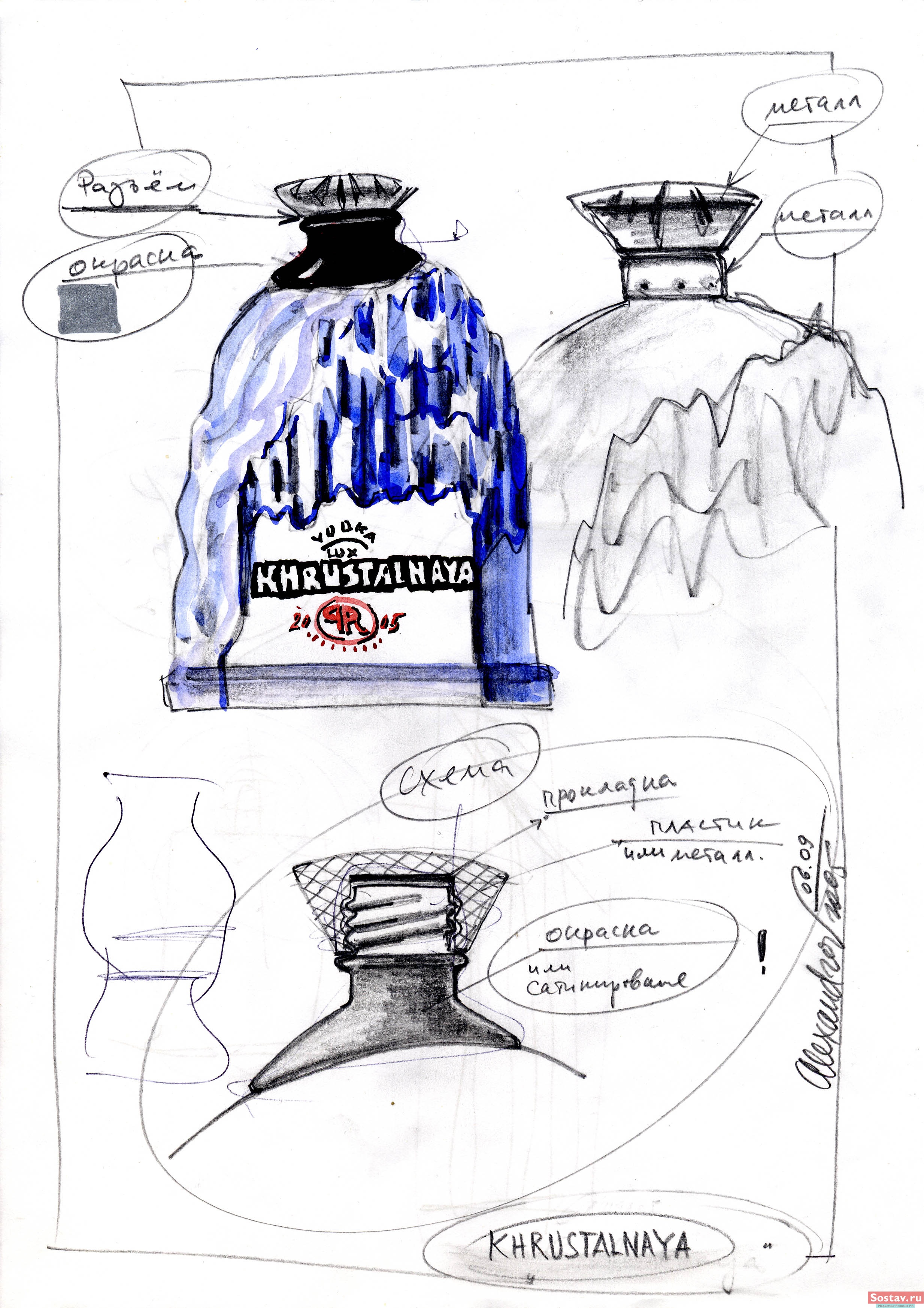 "Хрустальная" - "суперпремиальная" водка, которую удобно держать в рукеКомпания "Александров дом дизайна" представила свою инновационную разработку дизайна бутылки (декантера) для водки суперпремиального сегмента, выходящей под торговой маркой "Khrustalnaya".Необходимо было во внешнем виде бутылки передать преимущества бренда и его сущность, при этом не перегружая его графикой. Смысл бренда (хрустальность, прозрачность, исключительная чистота) отражены во внешней форме бутылки. Было создано большое количество авторских эскизов. Затем, уже по утвержденным эскизам, с учетом всех требований эргономики и антропометрии, был создан дизайн формы бутылки. Бутылка очень удобно держится в руке (для решения этой задачи создавались полномасштабные поисковые макеты из технического пластилина). На финальной стадии проектирования была представлена демонстрационная модель в натуральную величину из пластика. В состав проекта входила математическая модель, вся конструкторская документация и макеты для шелкотрафаретной печати. |
