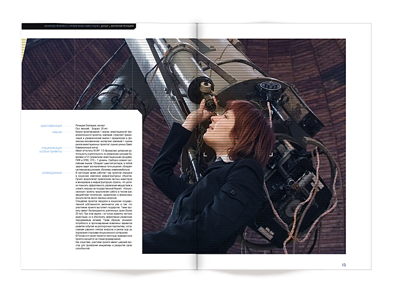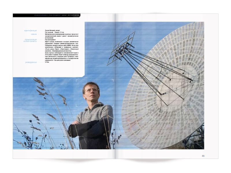 Наутилус аналитикус. Коммуникационное агентство ZERO разработало фирменный стиль и корпоративный буклет для компании Advanced Research - агентство финансового трендсеттингаКомпания Advanced Research основана в 2006 году специалистами, ранее работавшими в группе компаний АВК (Санкт-Петербург). Основной профиль деятельности: финансовый аудит и оценка, бизнес-аналитика, финансовый консалтинг и сопровождение процесса привлечения инвестиций. Профессиональный потенциал и колоссальный практический опыт позволили Advanced Research сразу же заявить о себе как о высококомпетентной команде специалистов, способной бросить вызов рынку.Advanced Research позиционируется как первое и единственное в России агентство финансового трендсеттинга. В широком смысле trendsetting - прогнозирование, устанавливание и популяризация трендов будущего, касающихся самых разных сфер человеческого бытия. Компания Advanced Research определяет, анализирует и оценивает влияние финансовых трендов и тенденций на бизнес своих клиентов. Товарная категория Financial Trendsetting Agency поднимает планку, отрывая AR от рутинных "аудиторов", "финансовых аналитиков" и прочих "консультантов". Логотип-подводная лодка подчеркивает компетентность компании: способность видеть "подводную часть" проблемы и "читать между строк". Корпоративный буклет AR спроектирован в стилистике секретных досье. Помимо описания услуг и сервисов, предоставляемых компанией, в издание вошли кейсы выполненных проектов, а также подробные профайлы ключевых специалистов. Специально для буклета сотрудники компании приняли участие в масштабной фотосессии. Съемки проходили на реальной подводной лодке, в наблюдательных залах Пулковской обсерватории, на Большом Обуховском (Вантовом) мосту и на промышленных объектах Петербурга. Репортажные фотографии изображают героев буклета (специалистов Advanced Research) в их подлинном облике: это настоящие капитаны в мире прогнозирования и оценки, люди дела, а не "конторские крысы". Состав творческой группы Консультант по маркетингу: Марина Добринчук. PR-специалист: Наташа Морару-Симановская. Дизайнер: Алексей Явиц. Фотограф: Илья Слонский. Копирайтер: Катя Чивилёва. Креативный директор: Сергей Ушан. Менеджмент проекта: Наташа Морару-Симановская. Генеральный директор Advanced Research: Светлана Пальянова. |