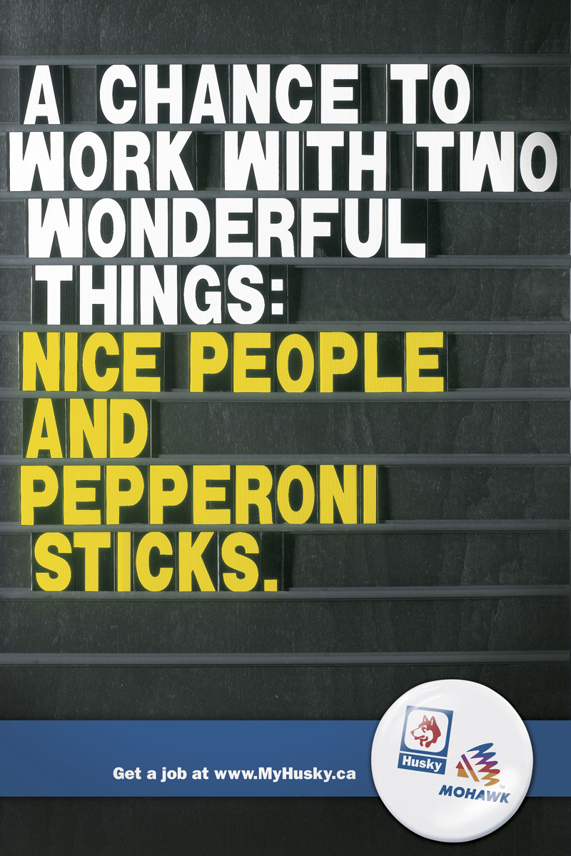 Husky Mohawk предлагает начать зарабатывать деньгиВ жизни каждого молодого человека наступает такое время, когда нужно начинать платить за себя. Именно тогда, как рассказывает нам рекламное агентство Highwood Communications, на помощь придет компания Husky Mohawk, занимающаяся трудоустройством.Надпись: "Переходите от родительского основания к основанию ваших друзей. Шанс поработать с двумя чудесными вещами. Хорошими людьми и колбасой пепперони. Воспользуйтесь возможностью поработать рядом с великими людьми. И продуктами с нугой. Скажи своим приятелям, что работаешь с нефтью (маслом) и газом. Приходит такое время в жизни каждого молодого человека, когда нужно платить за свои видео игры. Работа с большими людьми. И мясным рулетом. Получите работу в myhusky.ca" Агентство: Highwood Communications, Калгари, Канада Творческий директор: Patrick Andrews, Kurt Beaudoin Арт директор: Jonathan Jungwirth Копирайтер: Kurt Beaudoin Иллюстратор: Jason Sweet Фотограф: Jean Perron |
