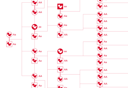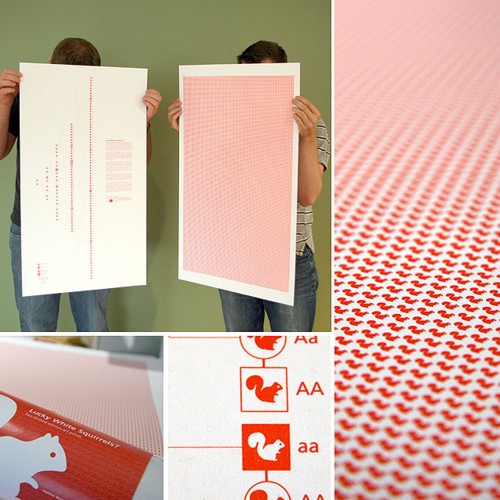 Эта работа, пользуясь средствами коммуникативного дизайна и инфографики, объясняет, почему увидеть белку-альбиноса — большая удача. Первый принт, с диаграммой, иллюстрирует смешение генов, необходимых для появления на свет хотя бы одной белки-альбиноса. Второй — в простых цифрах показывает соотношение белок-альбиносов к белкам-неальбиносам. Соотношение это, к слову, составляет 1:20,000.