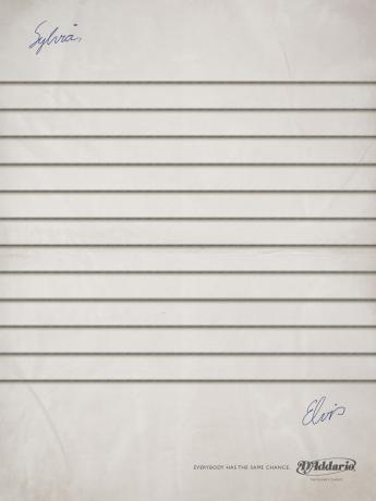 Нотный стан из струн в рекламе D'addarioУ всех одинаковые шансы добиться успеха в музыке, стать вторым Элвисом или Полом Маккартни, считает NBS, Rio de Janeiro, Brazil. Струны D'addario помогут вам в этом.Надпись: "У всех одинаковые шансы" Состав творческой группы Рекламное агентство: NBS, Rio de Janeiro, Brazil Творческие директора: Andre Lima, Pedro Feyer Арт директора: Bernardo Romero, Marcello Noronha Копирайтер: Sabrina Villar Фотограф: Studio H ![]() ![]() ![]() |