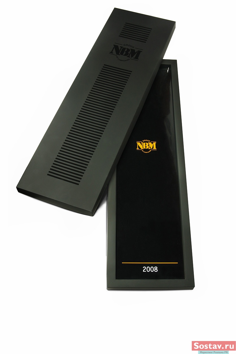 Корпоративный ВИП-набор для группы компаний "NBM-Стройсервис"Лаконичный дизайн набора (календарь+открытка+пакет), сделанного специалистами бюро графического дизайна "Энди_Зайн", подчеркнут использованием необычных для данной продукции материалов: черного пластика для корпоративного календаря (15х60 см.) и полупрозрачного сатинированного пластика для поздравительной открытки (22х11 см.).Коробки из дизайнерской бумаги собраны вручную. Состав творческой группы: Наталья Кислицына Ольга Погорелова |