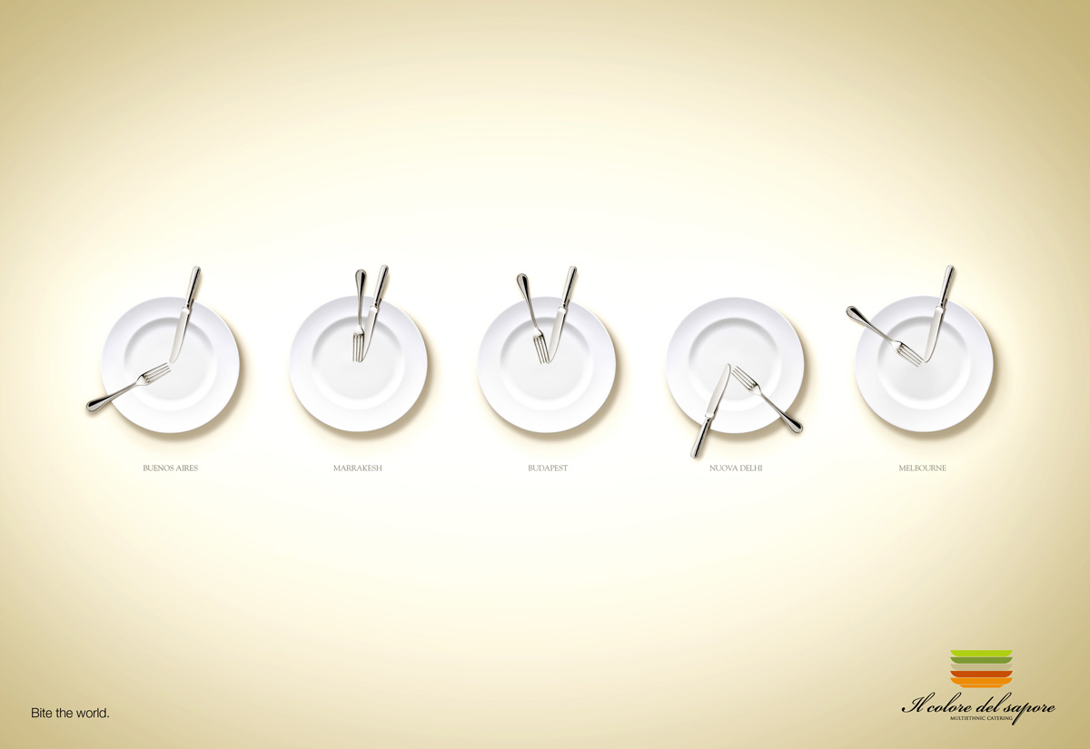 Реклама ресторана Il Colore del Sapore от агентства BelocalИтальянский ресторан Il Colore del Sapore предлагает своим посетителям обширный ассортимент традиционных блюд разных народов мира. Чтобы рассказать нам об этом, агентство Belocal представило нам тарелки, которые показывают разницу во времени в разных городах разных стран, чьи блюда можно попробовать в Il Colore del Sapore.Надпись: "Укуси мир. Il Colore del Sapore" Агентство: Belocal, Италия Арт директор: Michele Montanucci Копирайтер: Luigi Liggeri Иллюстратор: Giuseppe Volpini Фотограф: Paolo Malorgio |