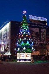 «Московская городская реклама» по заказу агентства «Граммофон» установила музыкальную ель «Русского радио» на Пушкинской площади Москвы накануне Нового года.