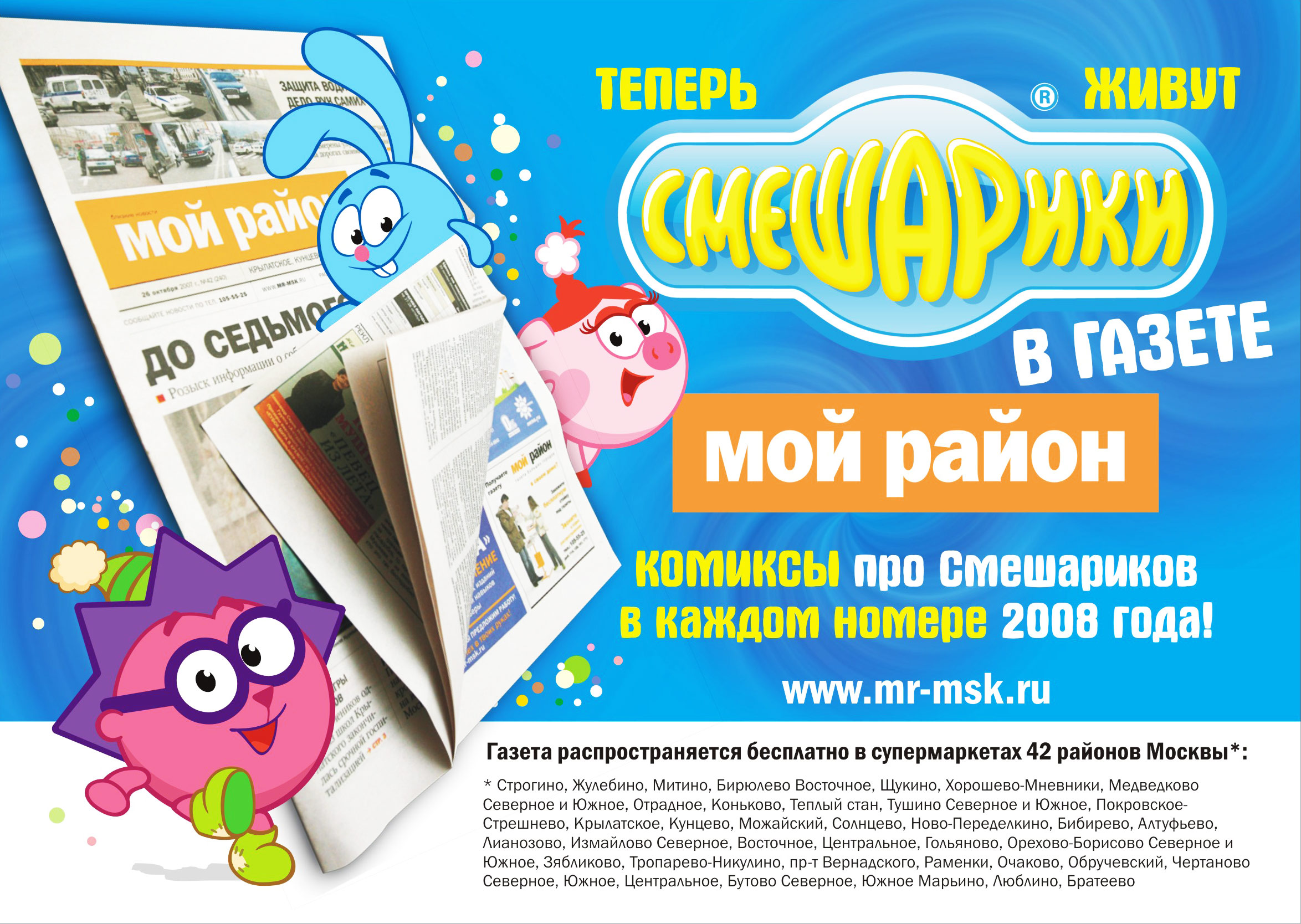 Популярные мультперсонажи привлекут аудиторию в "мой район". Сотрудничеством со "Смешариками" газета рассчитывает увеличить количество семейных читателей