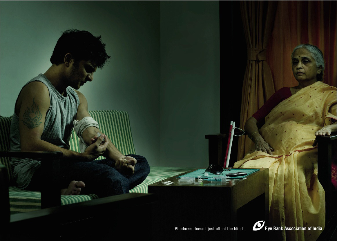 Euro RSCG считает, что слепота страшна не только для слепыхИндийское рекламное агентство Euro RSCG, создавая эту социальную кампанию для ассоциации Eye Bank Association of India, сообщает нам, что слепота затрагивает не только слепых людей, и подкрепляет это несколькими красноречивыми плакатамиНадпись: "Слепота затрагивает не только слепых." Агентство: Euro RSCG, Мумбай, Индия Творческий директор / Копирайтер: Nilesh Vaidya Арт директор: Prasanna Jagtap Фотограф: Avdhut Hembade |