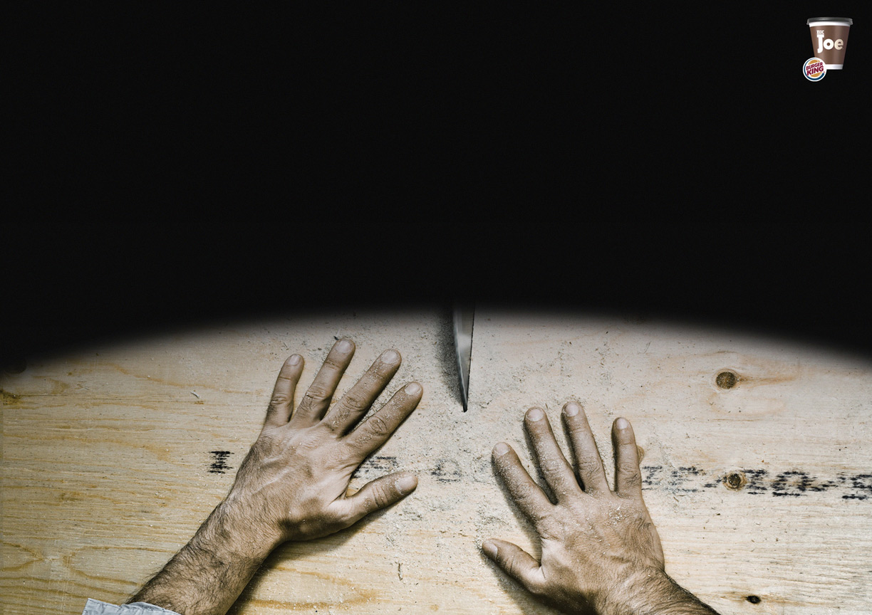 Кофе из Burger King придет на помощь в страшной ситуацииИногда возможность заснуть может быть смертельно опасна как для нас самих, так и для окружающих. Например, если вы хирург, цирюльник или работаете на пилораме, то заснув, вы можете совершить ужасные и непоправимые вещи. Как считает агентство Bleublancrouge, в такой ситуации может помочь только кофе Joe из ресторанов Burger King.Агентство: Bleublancrouge, Монреаль, Канада Творческий директор: Gaetan Namouric Арт директор: Sebastien Deland Копирайтер: Jonathan Rosman Фотограф: Alain Desjean Ретушь: Claude Lafrance |