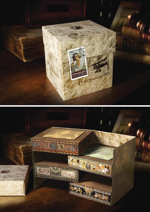 В работе «Комильфо» жюри привлекла интерактивность упаковки, соответствие моменту подарка или угощения - от него все ждут праздника, сюрпризов, чего-то удивительного. Упаковка раскладывается оригинальным способом, превращаясь в столик из четырех коробок, украшенных орнаментами разных эпох и стран.