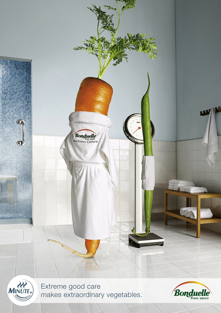 Овощи Bonduelle посещают салоны красоты и сауныДля того чтобы овощи Bonduelle были такими качественными, вкусными и полезными, о них заботятся чрезвычайно хорошо. Нидерландское рекламное агентство Comm'pas раскрывает нам секрет этой заботы: овощи Bonduelle посещают специальные салоны красоты и сауны.Надпись: "Чрезвычайная хорошая забота создает экстраординарные овощи." Агентство: Comm'pas, Бреда, Нидерланды Арт директор: Roy Schellekens Копирайтер: Arjan Hoekstra Фотограф: Habousha |