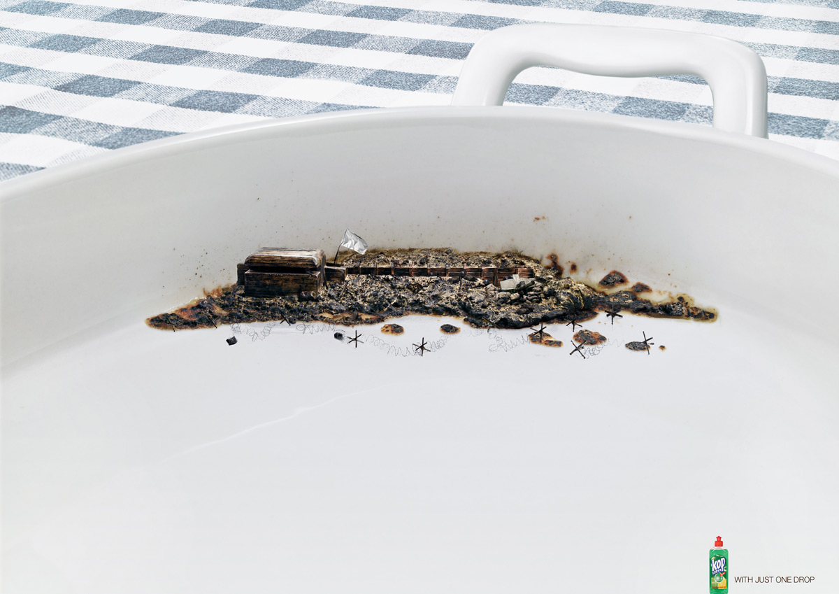 Kop - оружие массового поражения грязи и жира"Всего одна капля" - гласит этот рекламный плакат, созданный польским агентством EURO RSCG Warsaw. Дело в том, что всего одна капля нового средства для мытья посуды Kop заставит жир и грязь на вашей посуде выкинуть белый флаг.Надпись: "Всего одна капля." Агентство: EURO RSCG Warsaw, Польша Творческий директор: Jacek Szulecki Арт директор: Sylwia Rekawek Копирайтер: Justyna Nakielska Фотограф: Szymon Swietochowski Производство: Photoby, Yellow Studio |