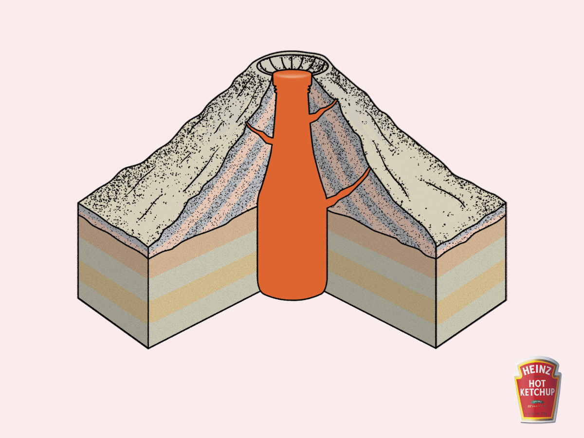 Кетчуп Heinz горячий как вулканДля того чтобы донести до ЦА, что Heinz Hot Ketchup горяч, бельгийские агентство Leo Burnett, Brussels поместило не принт изображение вулкана, в котором очертания расплавленной магмы очень похожи по форме на бутылку Heinz.Состав творческой группы Рекламное агентство: Leo Burnett, Brussels, Бельгия Творческие директора: Michel De Lauw, Jean-Paul Lefebvre Арт директора/Копирайтеры: Romain Pergeaux / Mathieu Cuvelier |