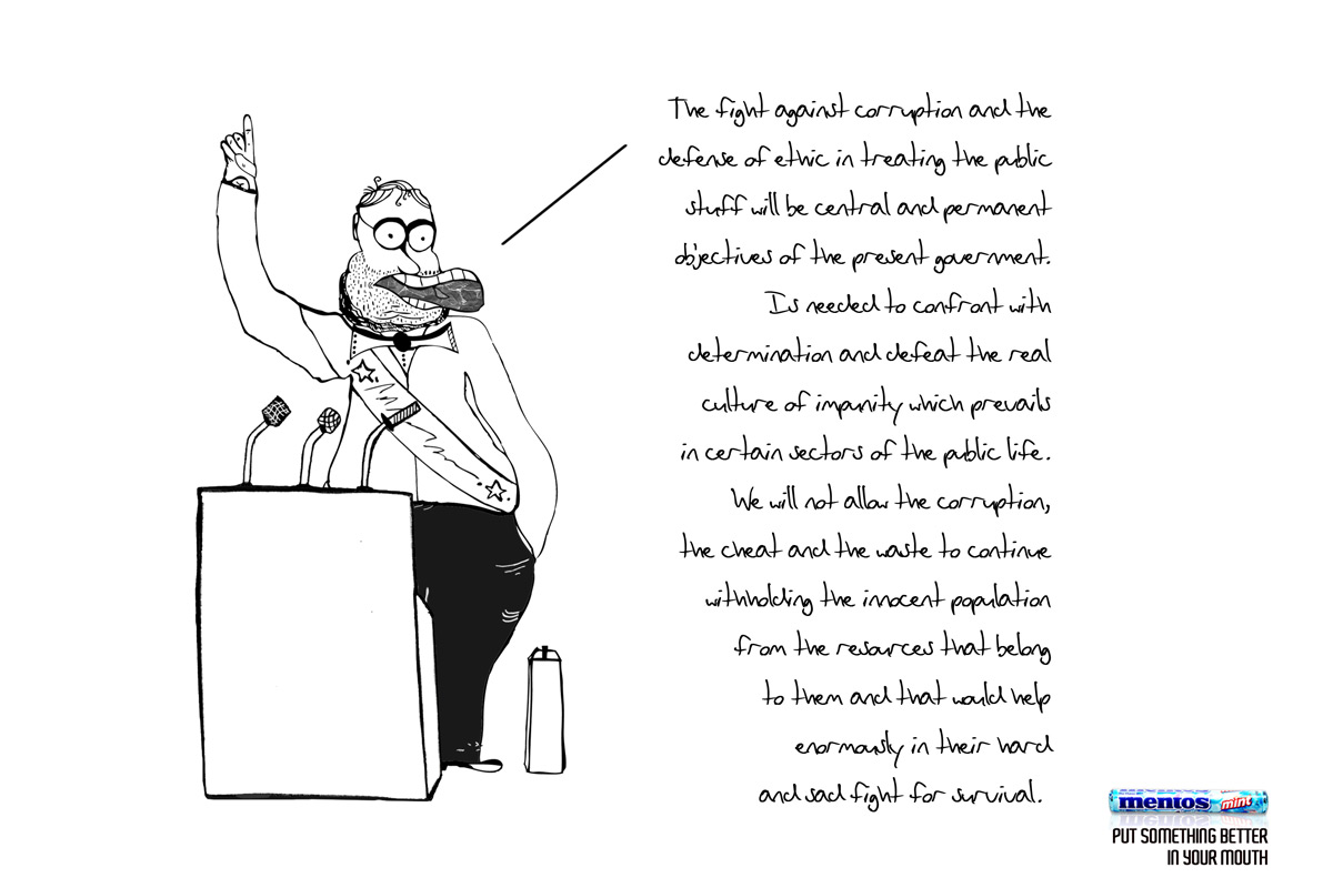 Лживые речи и религиозные проповеди в рекламе MenthosБразильская рекламная школа Miami Ad School, рекламируя Menthos, считает, что люди очень часто врут. Причем врут представители самых различных профессий и социальных слоёв. Пусть же ваши уста источают свежее дыхание, а не лживые рассказы, а Menthos вам в этом поможет.Надпись: "Положите в ваш рот что-нибудь лучшее" Состав творческой группы Рекламная школа: Miami Ad School, Sao Paulo, Brazil Арт директор: Pedro Henrique Fernandes Копирайтер: Luciana Elaiuy |