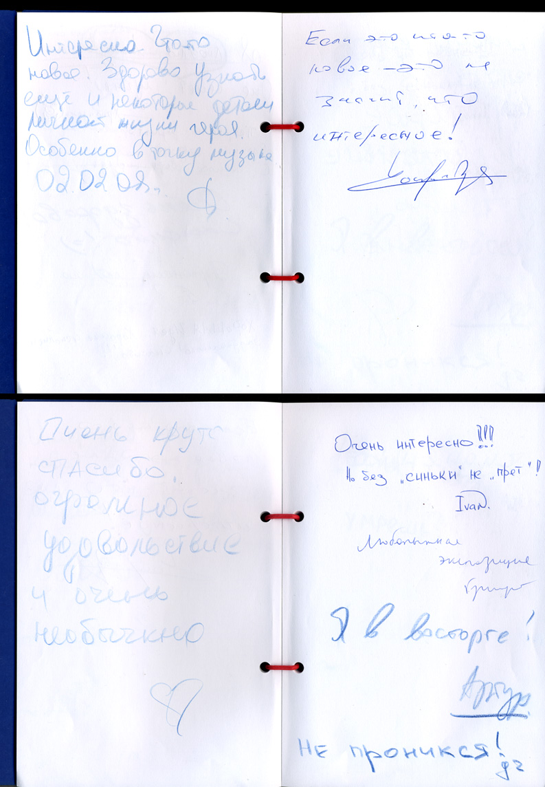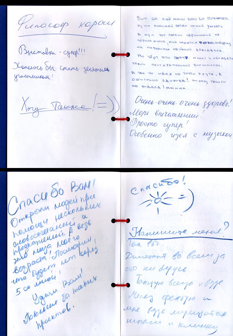Leo Burnett Moscow завершило выставку "девять: лица будущего"3 февраля в галерее "Винзавод" закончилась выставка "девять: лица будущего", посвященная запуску проекта Indigo агентства Leo Burnett Moscow.Выставку посетило очень много очень разных людей. Мы хотим поделиться с вами тем, что они написали в книгу отзывов, которая лежала в зале, где проходила экспозиция. |
