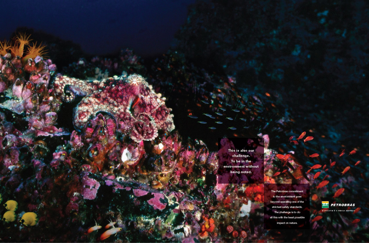 Нефтяная компания Petrobras маскируется под окружающую средуБразильская компания Petrobras занимается нефтью и нефтяными побочными продуктами, кроме того она заботится о том, чтобы не в коем случае не причинить своей деятельностью вред окружающей среде. Именно поэтому ее влияние на окружающую среду так трудно заметить. Также трудно, как обнаружить на этих принтах от рекламного агентства Quê маскирующихся живых существ.Надпись: Это также и вызов нам. Находиться в окружающей среде и не быть замеченным. Агентство: Que, Рио-де-Жанейро, Бразилия Арт директор:Fernando Freitas Копирайтер: Chiquinho Lucchini Фотограф: Platinum |