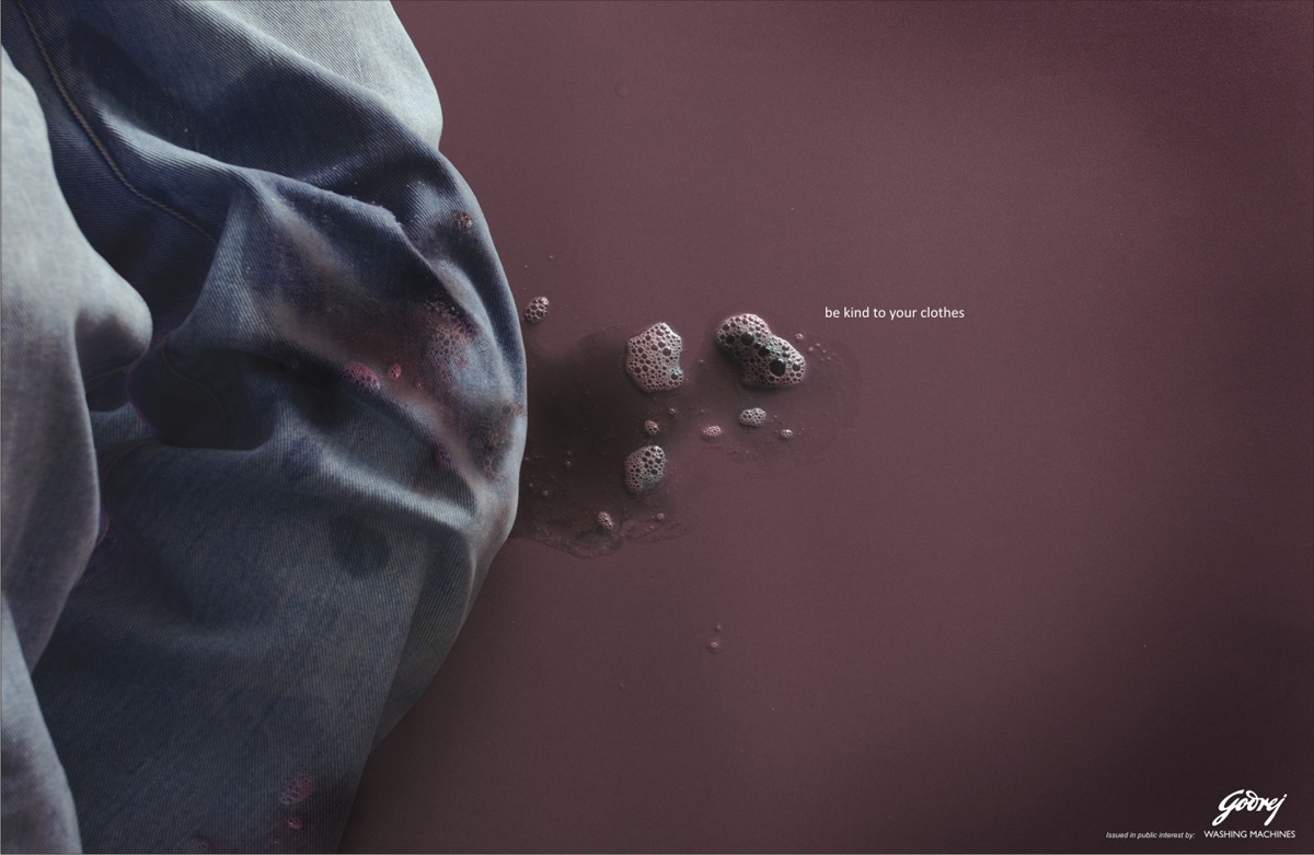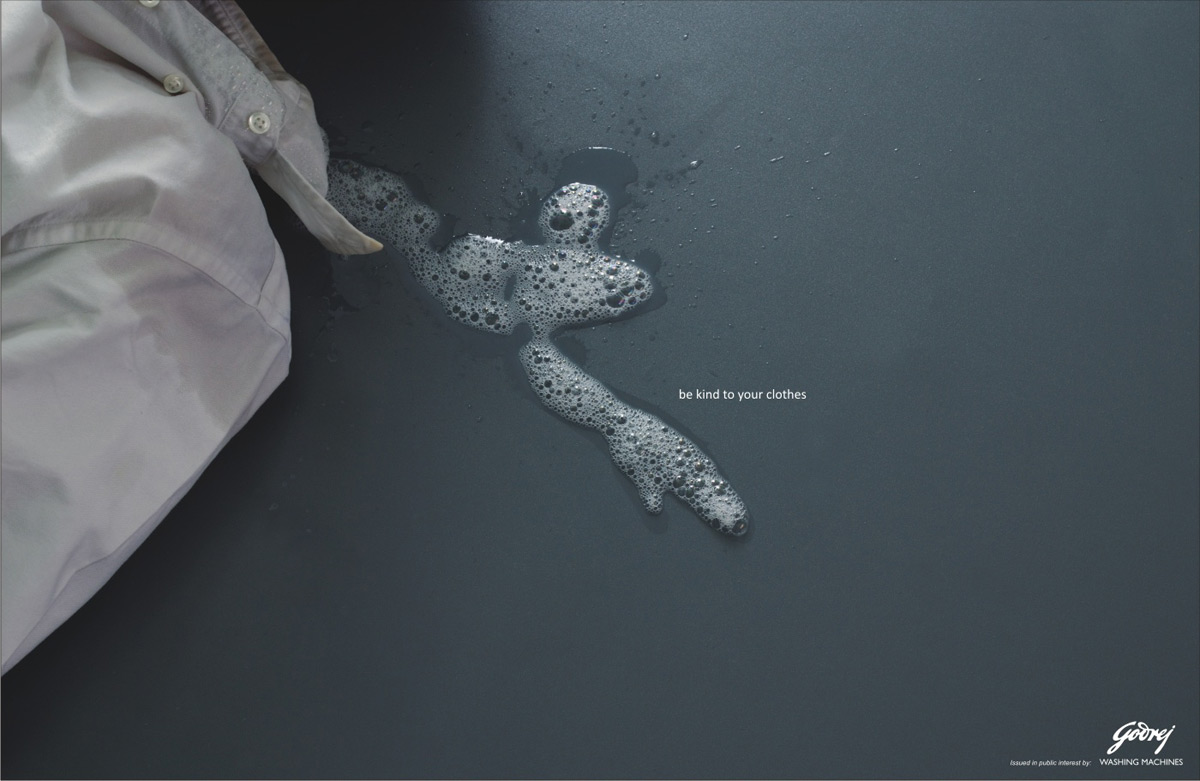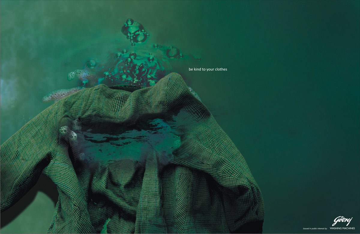Будь добрее к своей одежде, стирай ее в машинах GodrejИндийское рекламное агентство Viscomm обращается к нам, призывая быть добрее к своей одежде, не мучить и не убивать ее плохими стиральными порошками и некачественной бытовой техникой. В качестве альтернативы нам предлагают использовать деликатные стиральные машины Godrej.Надпись: "Будь добрее к своей одежде." Агентство: Viscomm, Мумбай, Индия Творческий директор: Debdarsan Dutta Арт директор / Ретушь: Pranil Suratkar Копирайтер: Vishal Saxena Фотограф: Som Shubhro Sarkar |