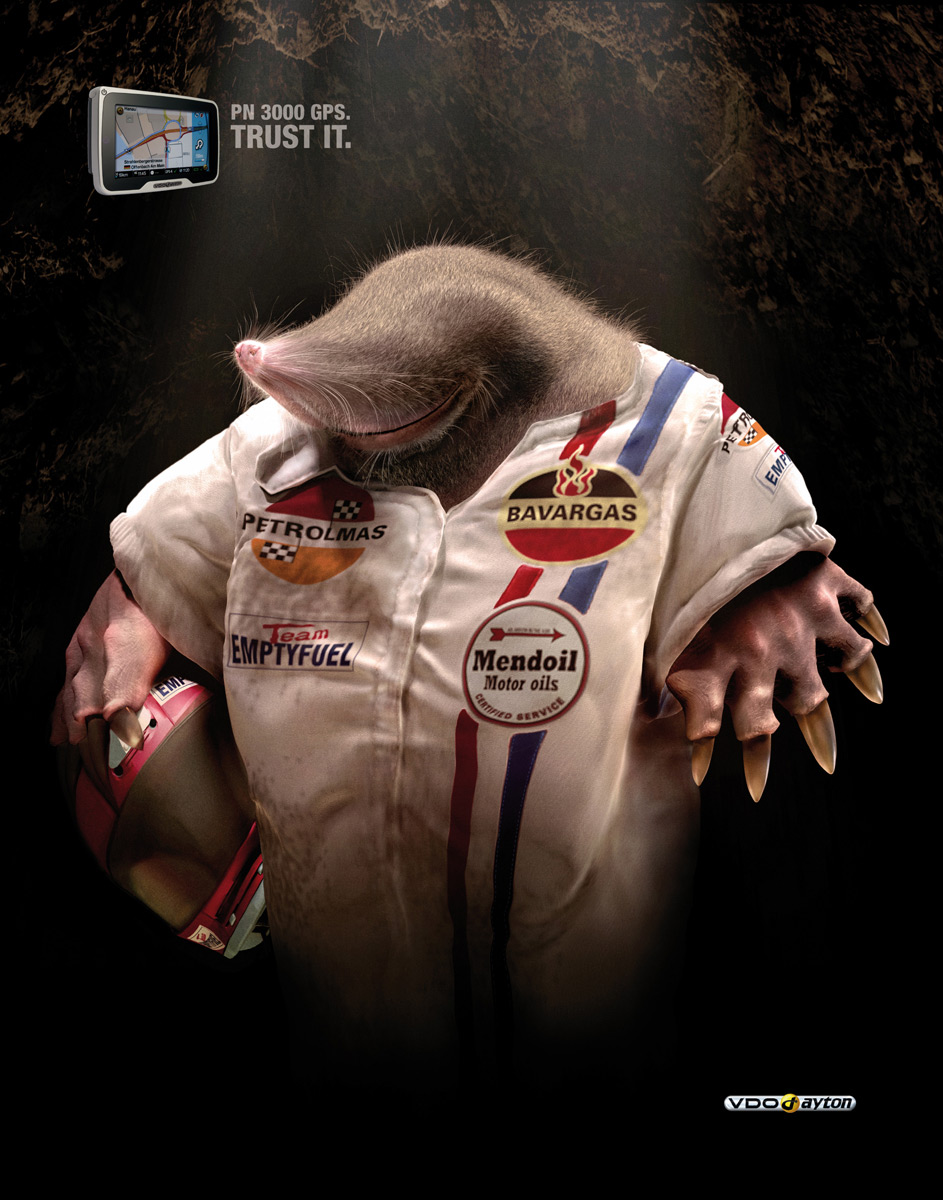 Спортивные кроты рекламируют PN3000 GPSКрот в гоночной форме, созданный итальянским агентством Saatchi & Saatchi призывает ЦА не плутать по узким улочкам в поисках верного маршрута, а обратиться за помощью к PN3000 GPS.Надпись: "PN3000 GPS. Доверяй" Состав творческой группы Рекламное агентство: Saatchi & Saatchi, Rome, Italy Арт директор: Diego Mendozza Копирайтер: Stefano Massari Иллюстратор: Alessandro Bavari |