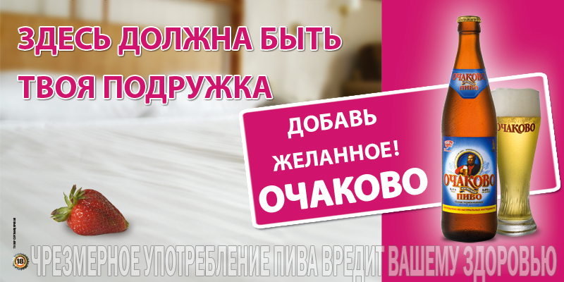 "Добавь желанное!" "Очаково" - с новой этикеткой и новой рекламной кампаниейС 8 февраля 2008 года стартовала рекламная кампания "Добавь желанное!" в поддержку пива "Очаково". Кампания реализуется средствами наружной рекламы.В качестве носителей выбраны крупноформатные конструкции и стандартные щиты, расположенные вдоль крупнейших магистралей и транспортных развязок в Москве. Всего более 50 поверхностей. Разработка дизайна и размещение на наружных носителях реализовано РА "Ателье Вентура".4 |